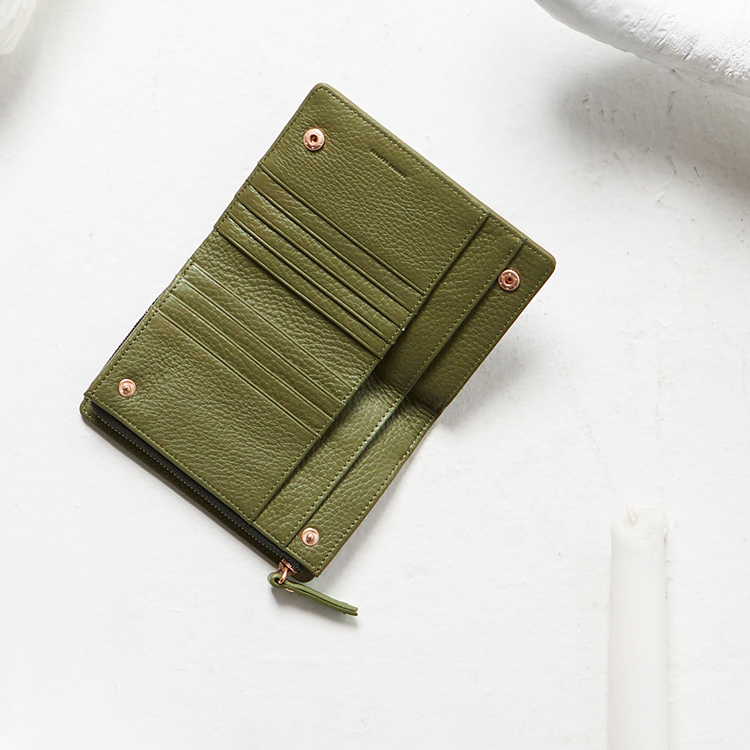 YKK玫瑰金拉鍊硬件不用打開皮夾,即可使用零錢袋