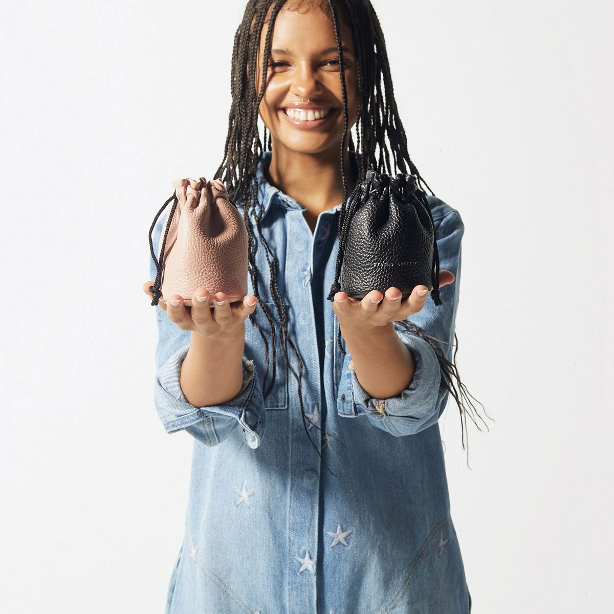 “Loving is Easy”迷你束口袋可以很好的容納零錢或其他你珍愛的小物,如珠寶、唇彩、小精靈、灰塵(?)...等,將你的無限想像帶在身邊。
