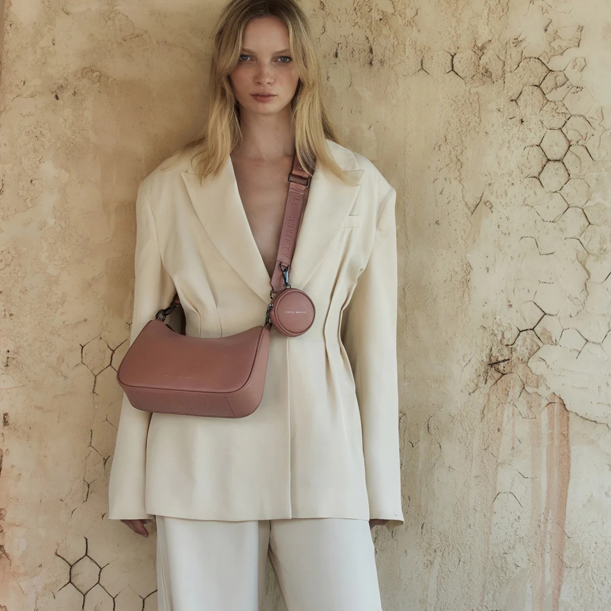 GO WITH ME皮革零錢鑰匙包可以扣在你的包包上。完美容納零錢或其他你珍愛的小物,如珠寶、唇彩、硬幣、髮帶...等,專屬訂製的銅製扣件可勾在包包上。