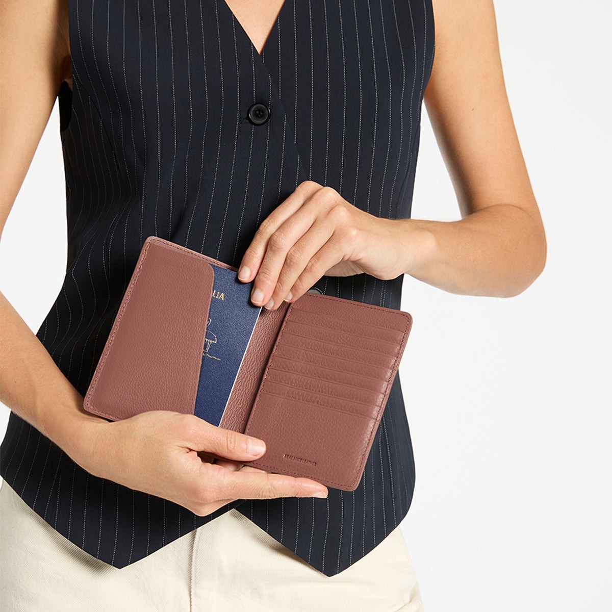 配有內部護照套、卡槽和外部登機證口袋,讓旅行變得輕而易舉。