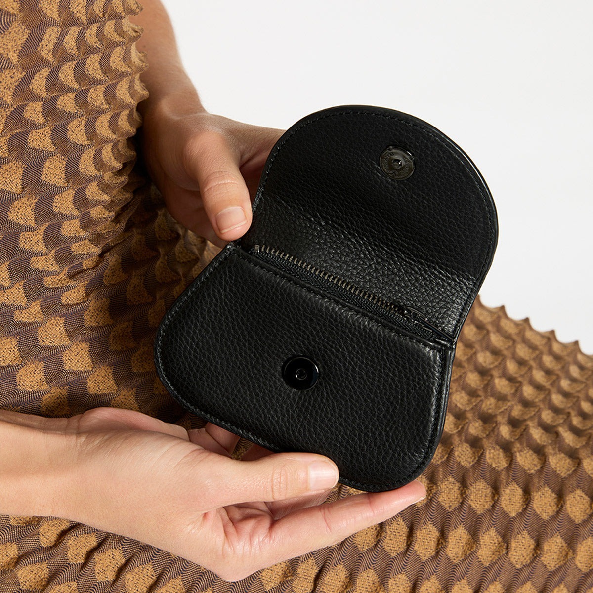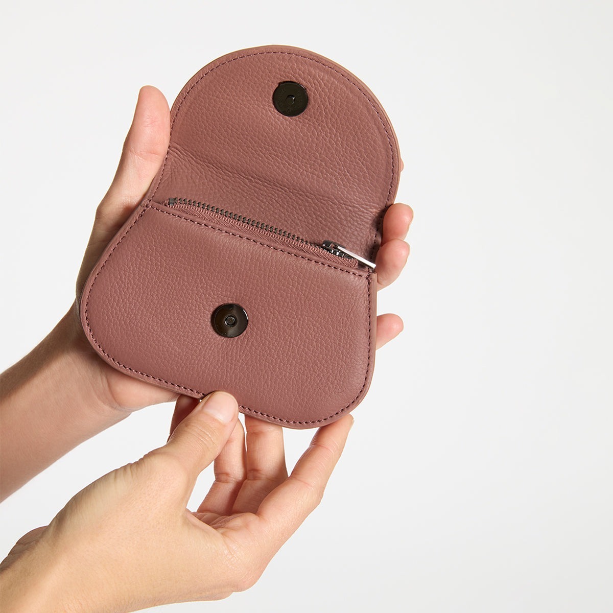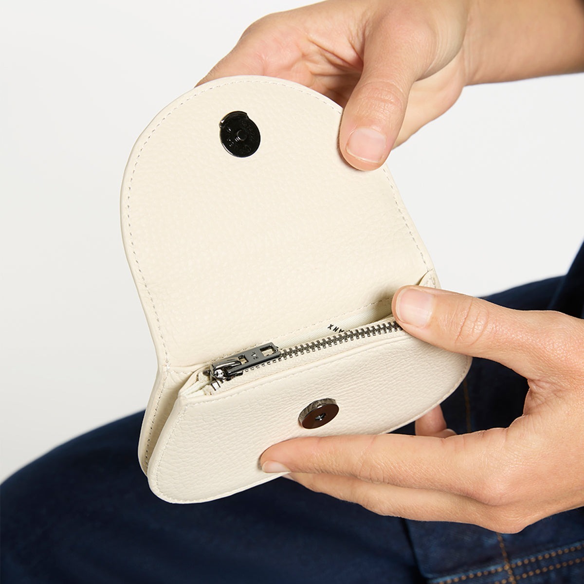 簡約外觀,曲線優美,可輕鬆容納卡片、折疊紙幣和硬幣。尺寸完美,可放入口袋或放入任何尺寸的包中。