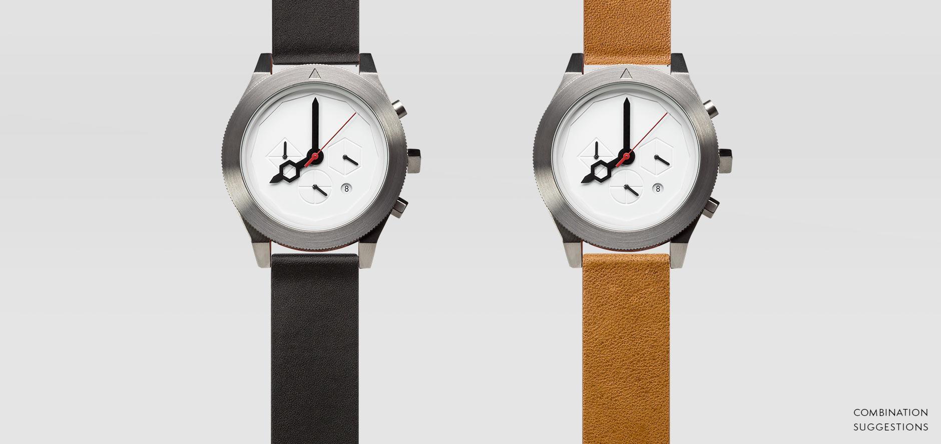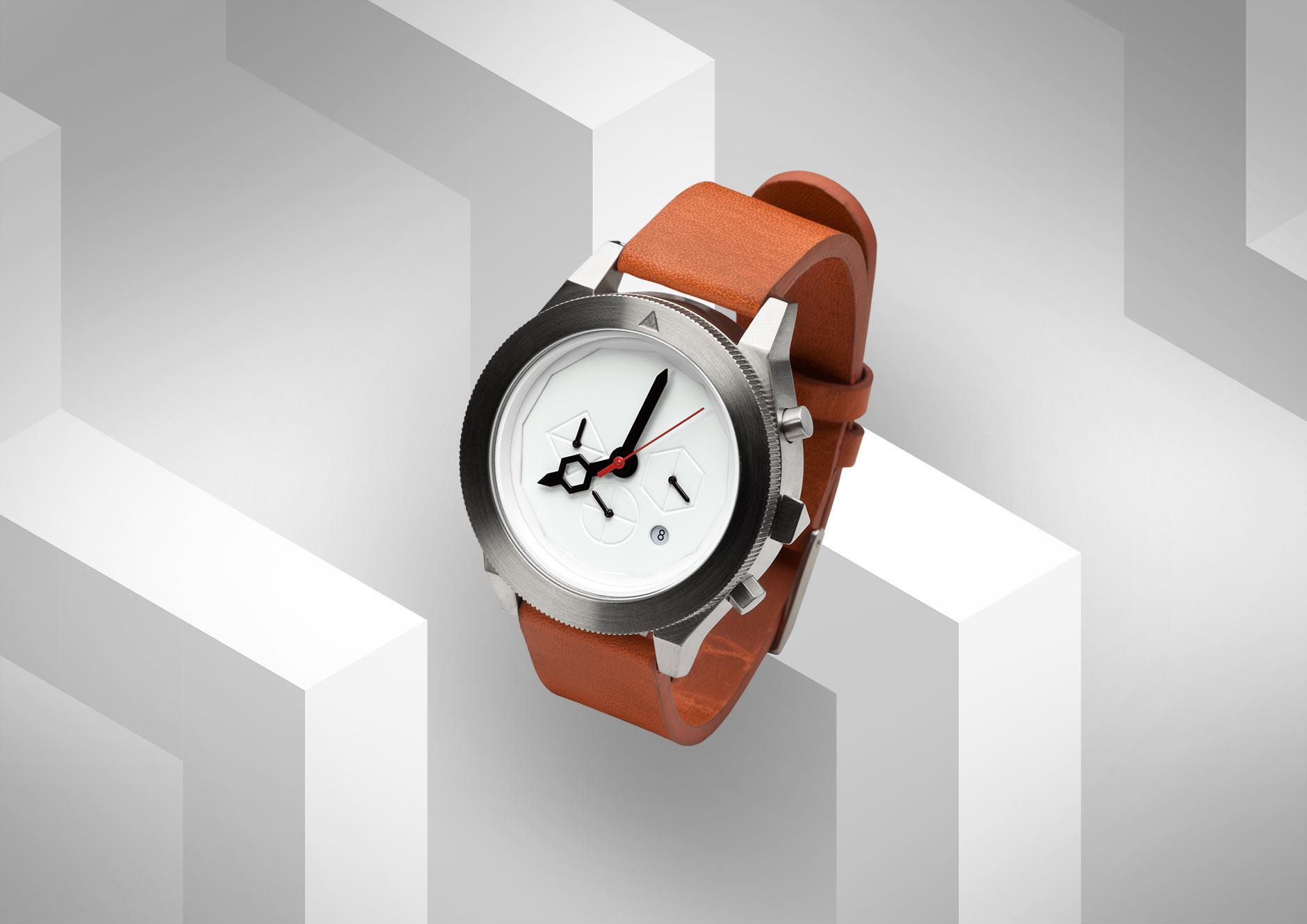 Iconic的核心是一只1:10計時碼表的日本石英機芯。它的錶盤具設計又兼具功能性和對稱性,並帶有酸蝕刻細節和可追踪經過時間的旋轉錶圈。