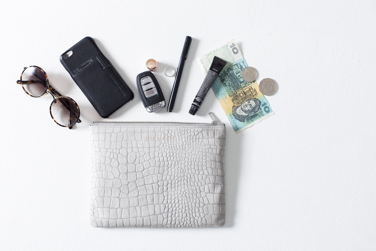 ANTIHEROINE 平口夾 / 灰色鱷魚壓紋