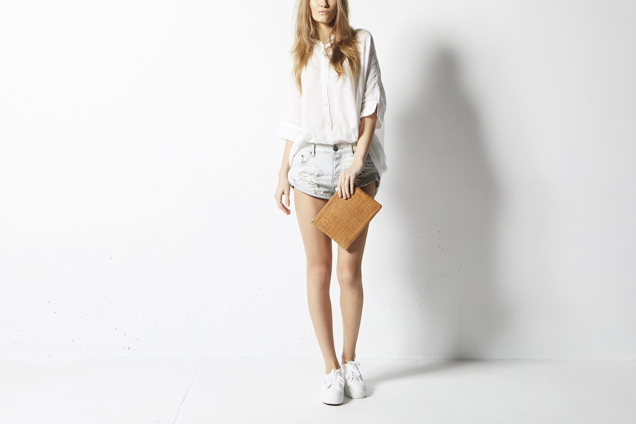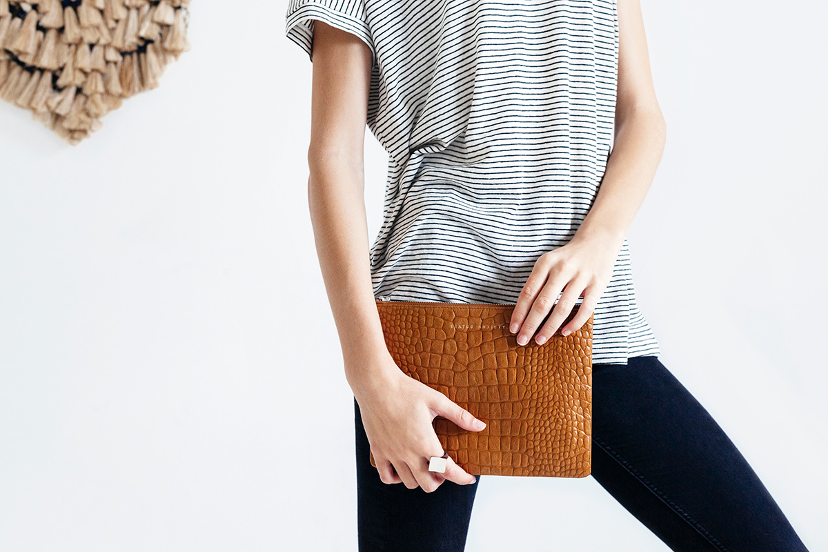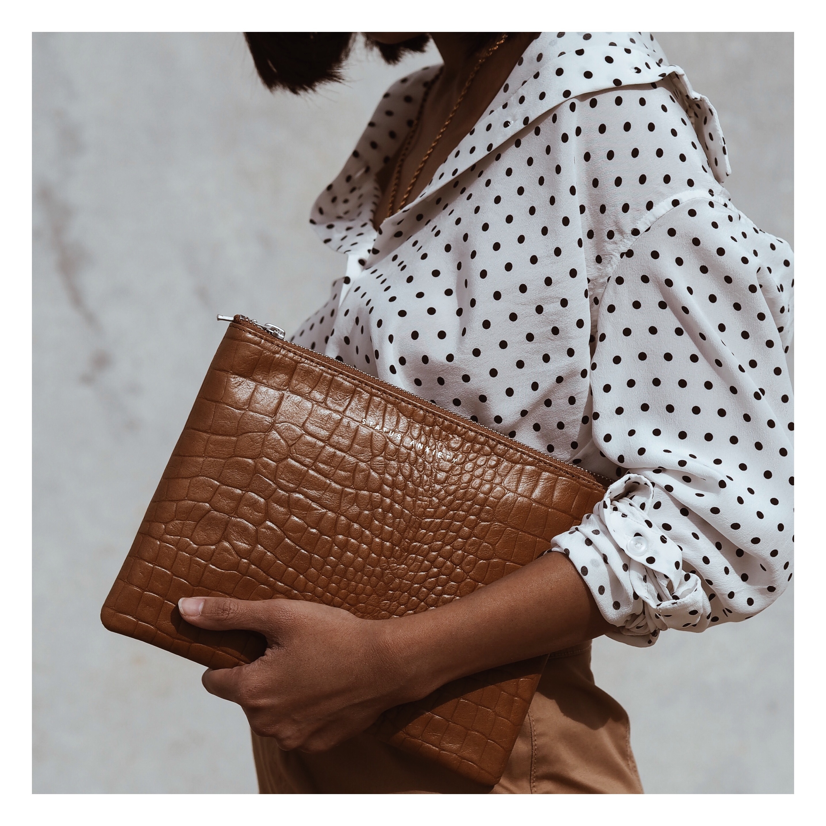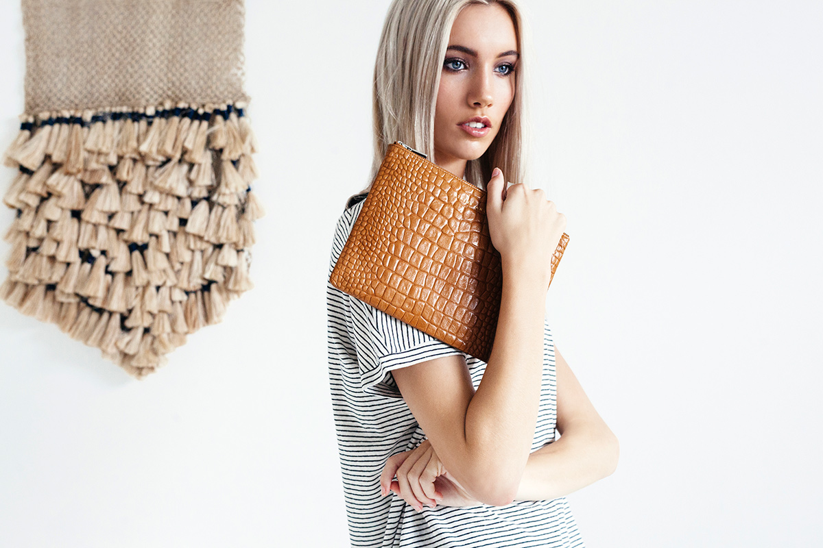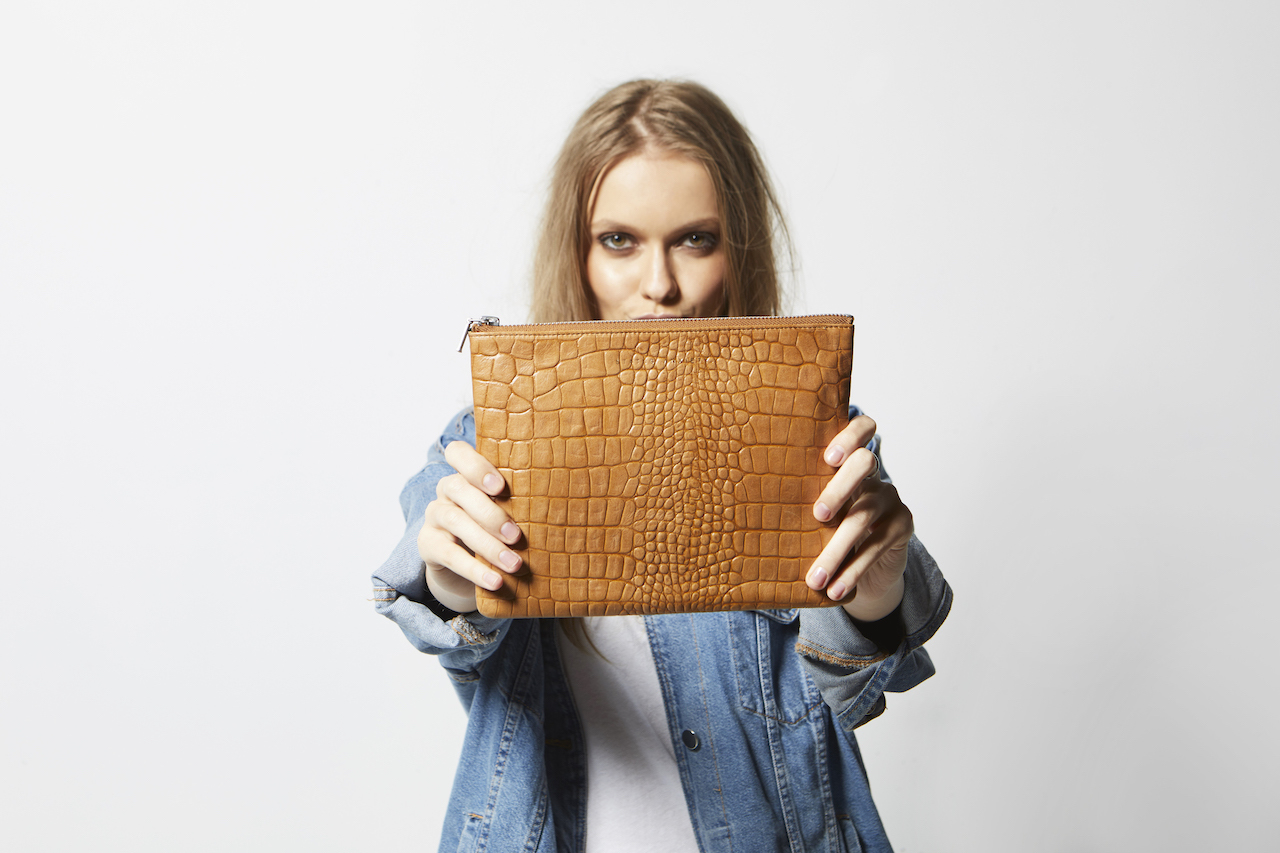 ANTIHEROINE 平口夾 / 駝色鱷魚壓紋