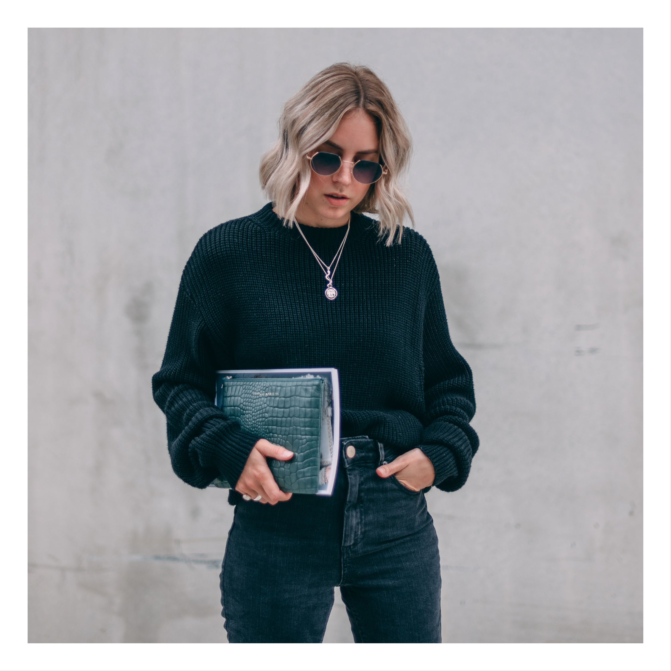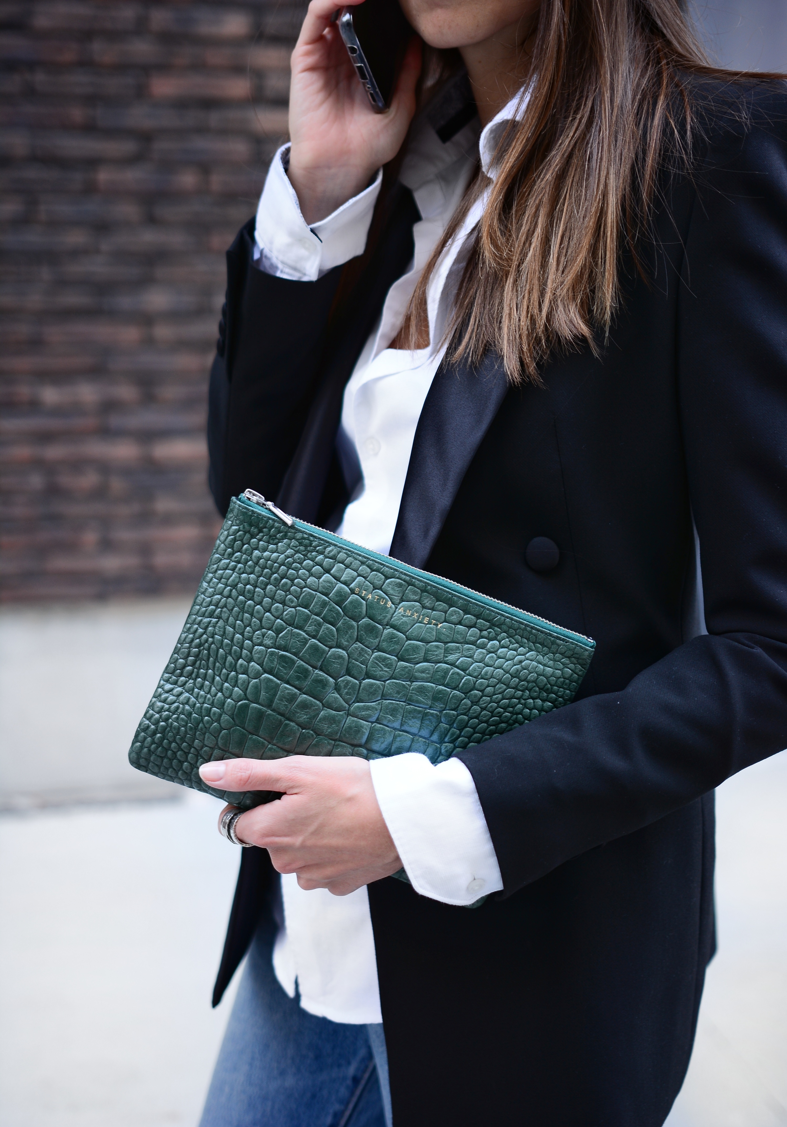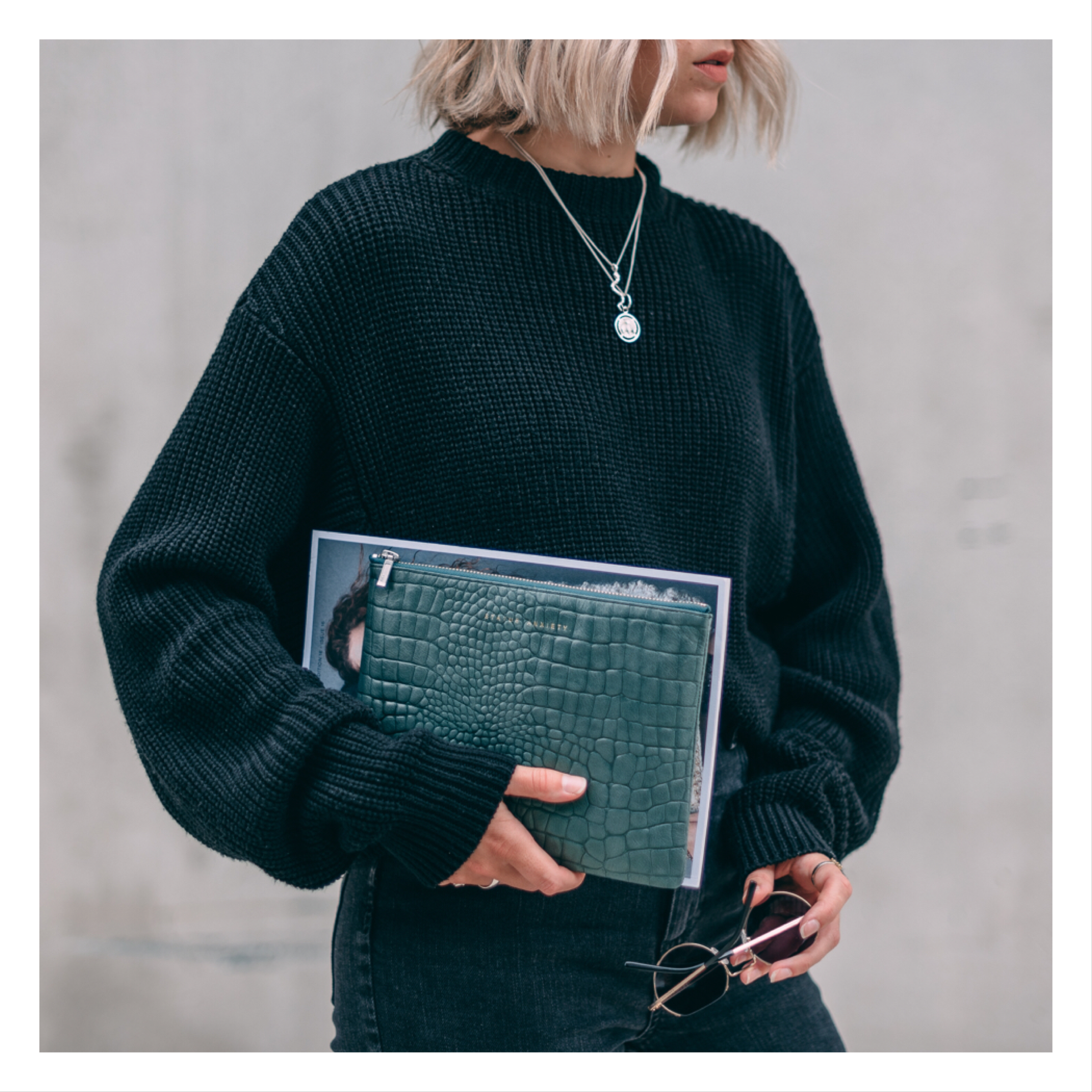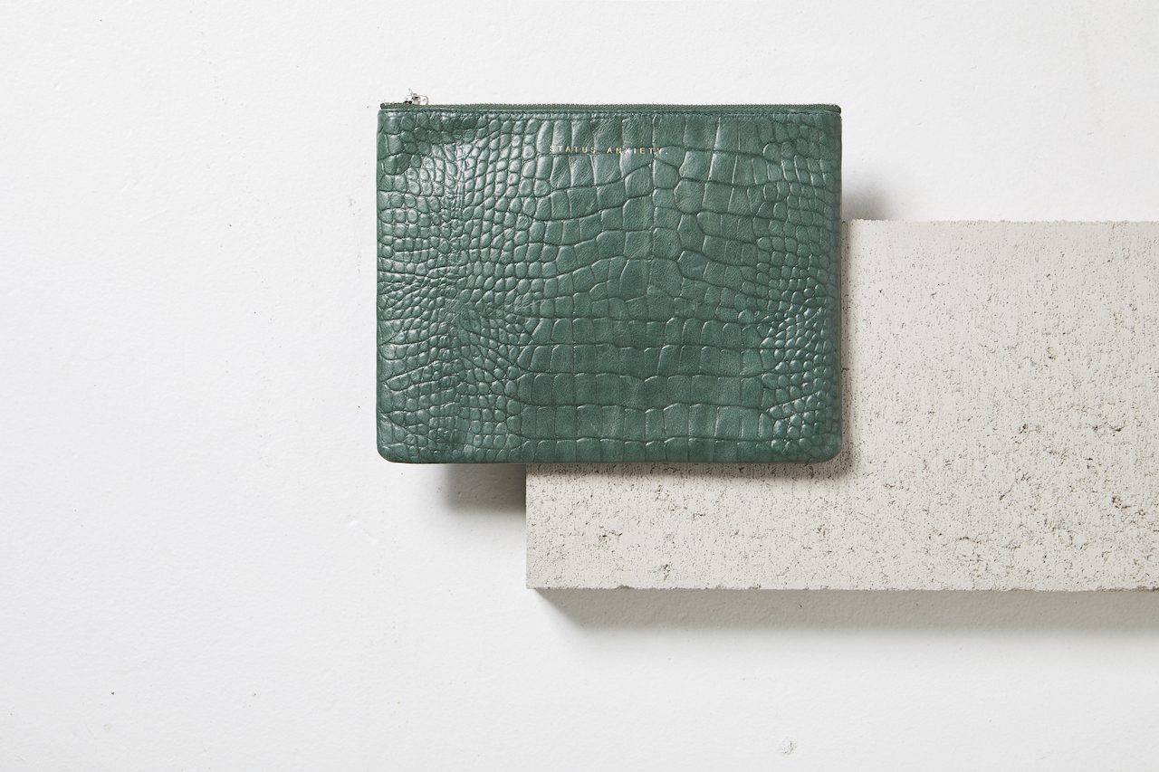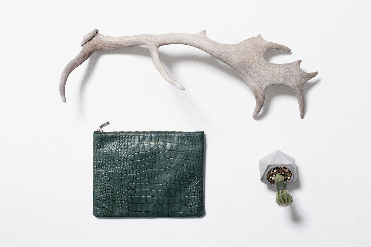 ANTIHEROINE 平口夾 / 綠色鱷魚壓紋