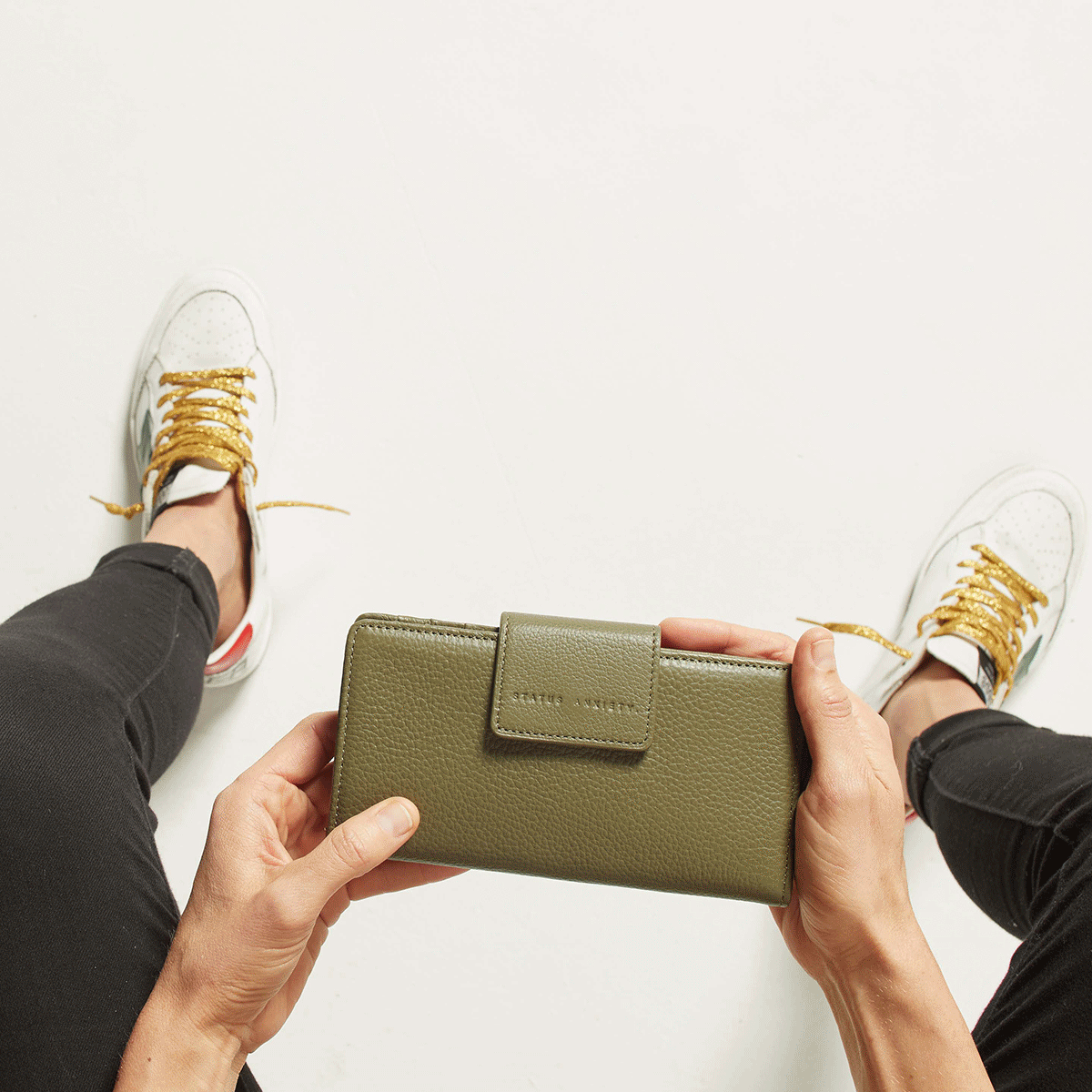 Ruins識別度極高的反折扣蓋,使纖細的包身增加了豐富層次;搭上經典的荔枝皮,讓極簡造型更具深度。