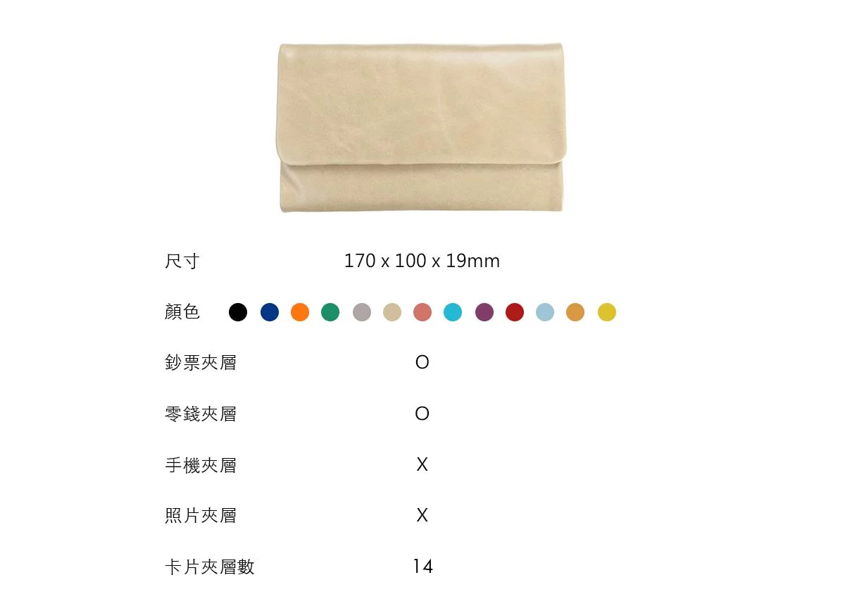 與DAKOTA並列為最熱門款式,經典三摺式設計,款式中顏色最多,造型厚、圓潤,稍微可愛、平易近人些。