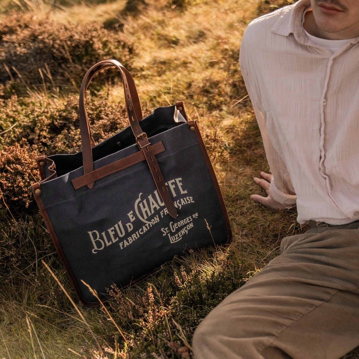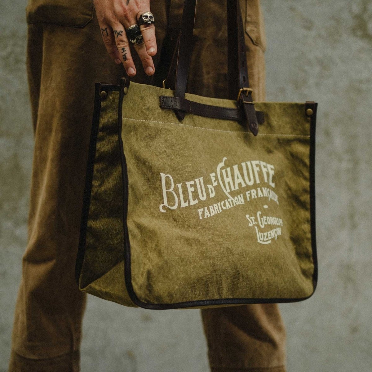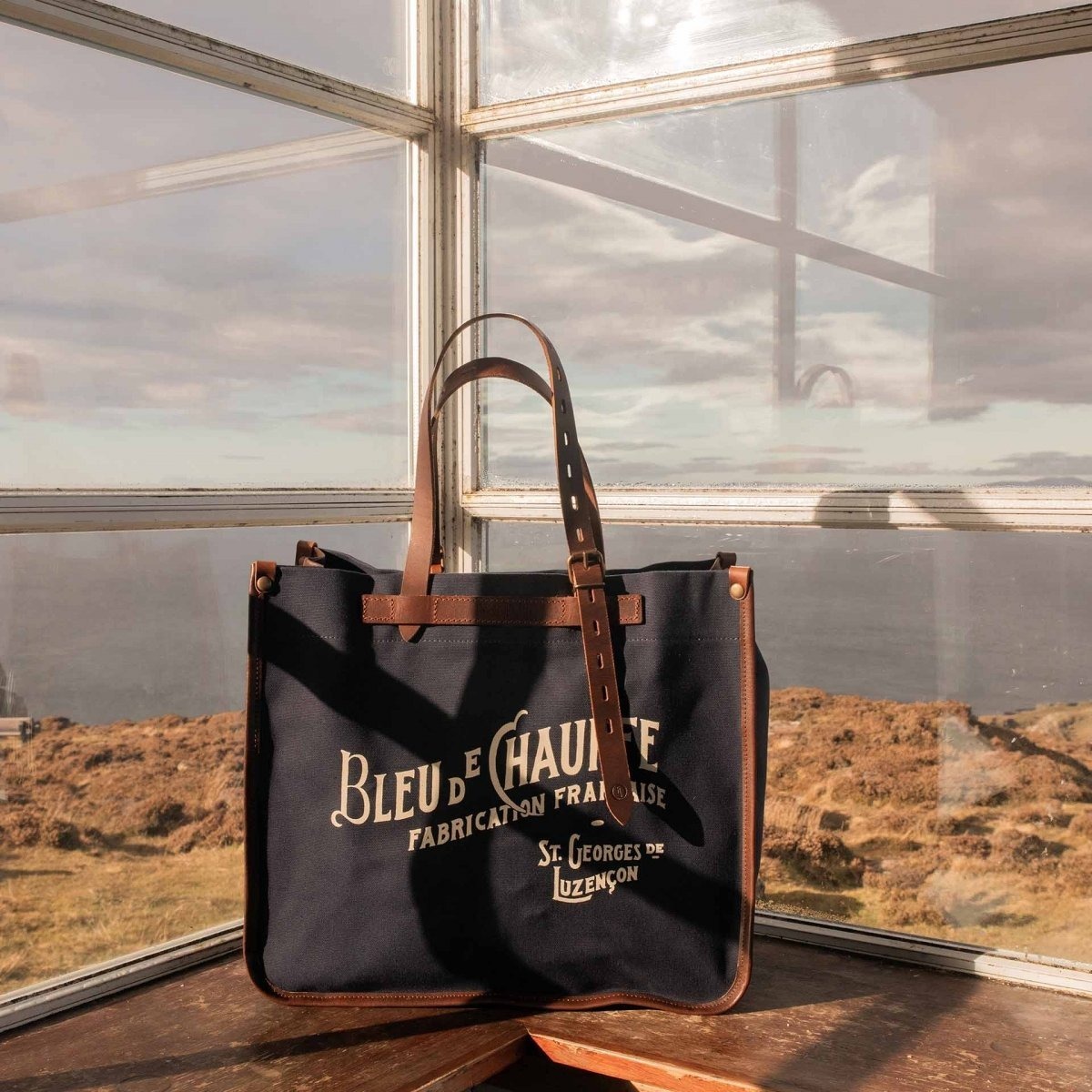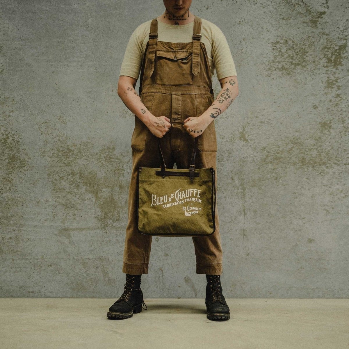 手提袋帶有 Bleu de Chauffe 標誌,該標誌由 1924us 為此次活動設計,1924us 是由設計師/平面藝術家/攝影師 Christian 和 Elle-Mat Watson 創立的團體。