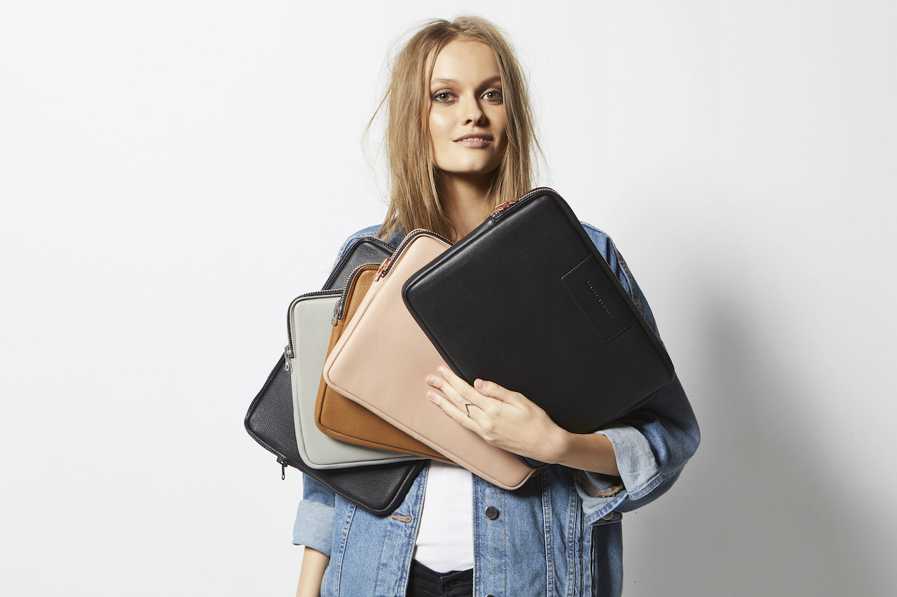 Before I Leave筆電套採用優質鵝卵石皮革和堅固的YKK拉鍊硬件手工製作而成。厚實的內部襯墊和微纖維襯裡提供額外的減震效果。