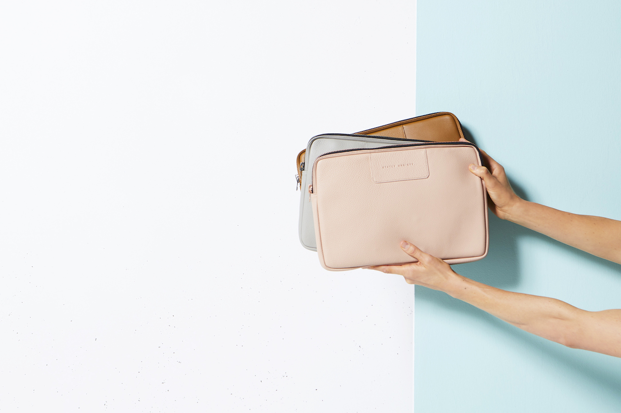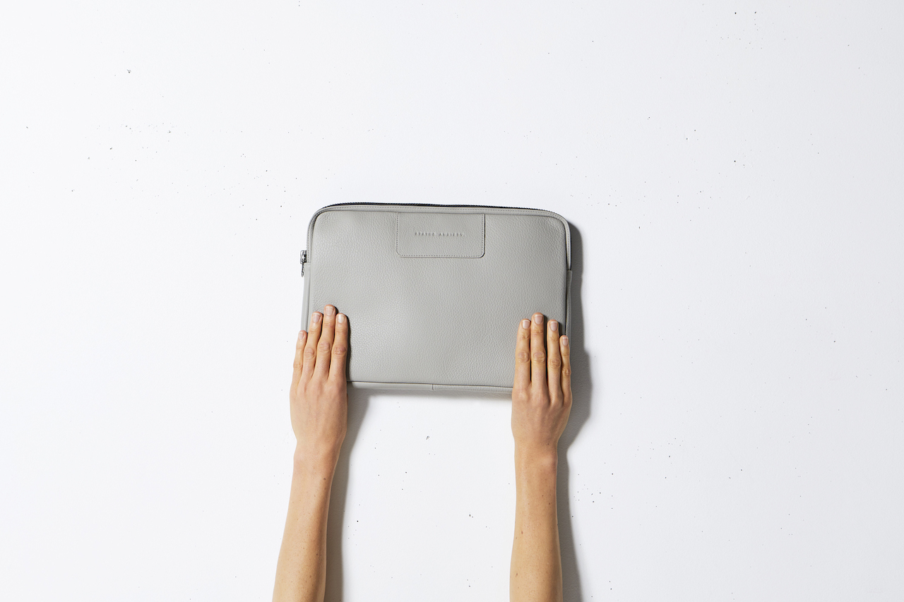Before I Leave筆電套採用優質鵝卵石皮革和堅固的YKK拉鍊硬件手工製作而成。厚實的內部襯墊和微纖維襯裡提供額外的減震效果。