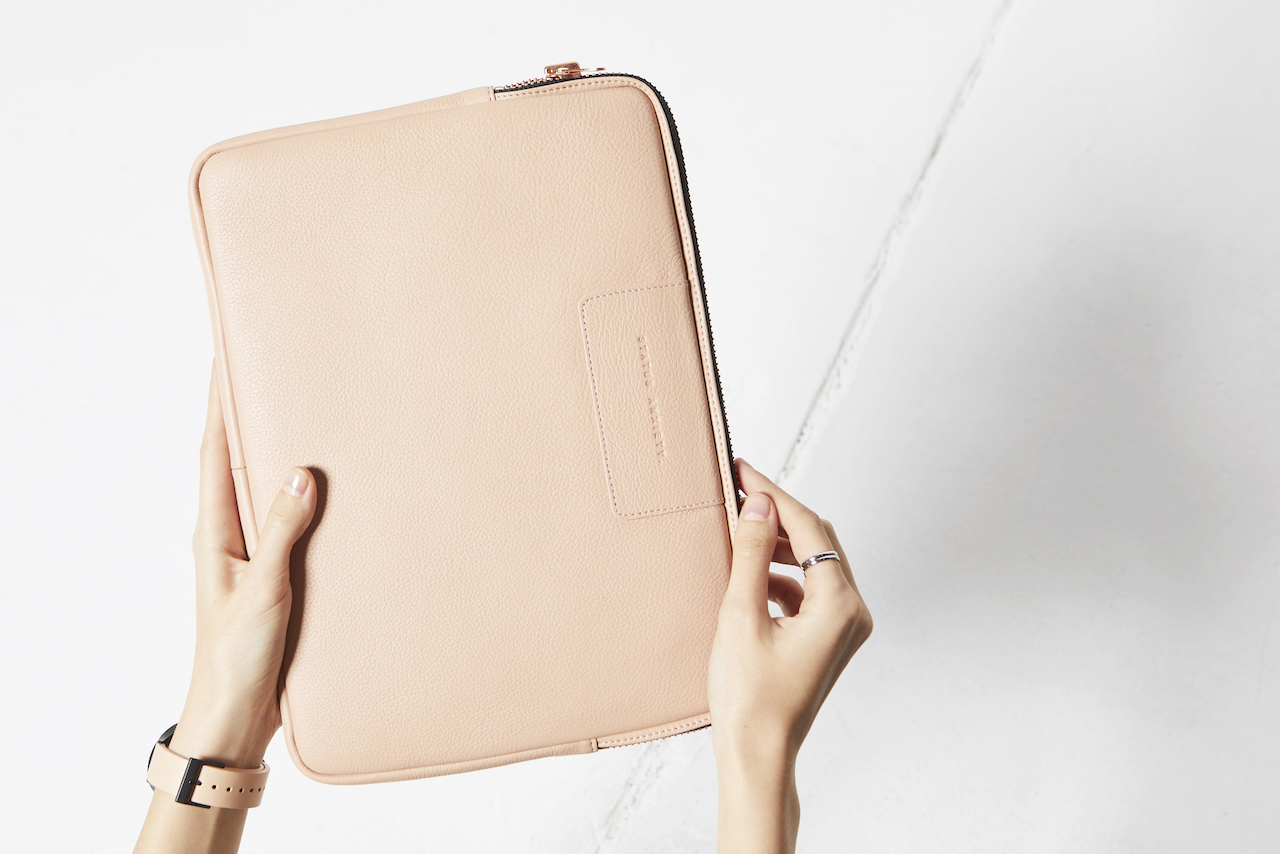 Before I Leave筆電套採用優質鵝卵石皮革和堅固的YKK拉鍊硬件手工製作而成。厚實的內部襯墊和微纖維襯裡提供額外的減震效果。