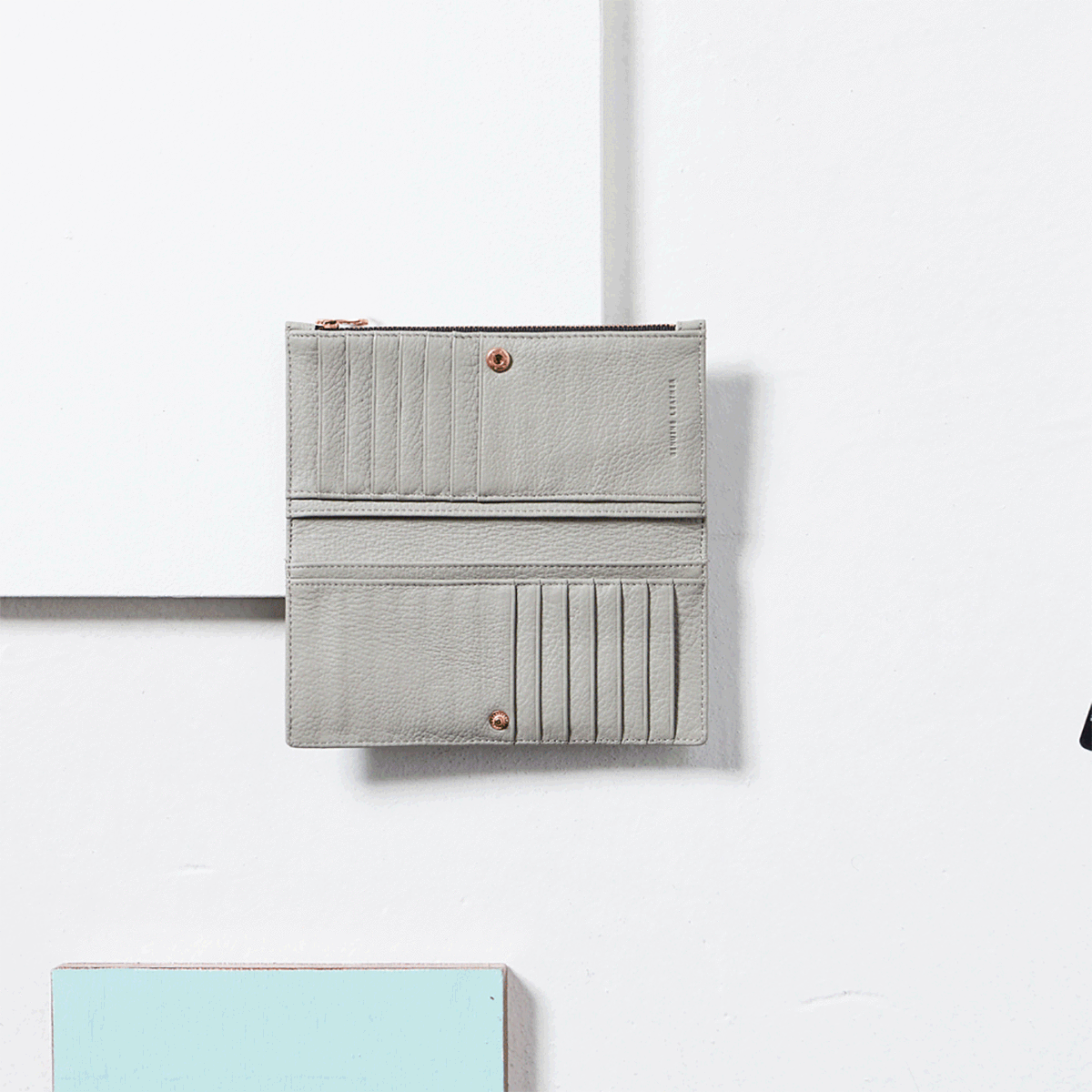 以另一款熱銷長夾Dakota為原型設計,在皮革質感上更加成熟,皮革顏色柔和,配上霧面玫瑰金的拉鍊,多量正反兩面式卡夾和鈔票、零錢收納,內斂的風格能帶出使用者的專業感。放在外面的拉鍊夾層能讓你輕易地拿到零錢,而不用打開主要的錢包夾層,非常方便。