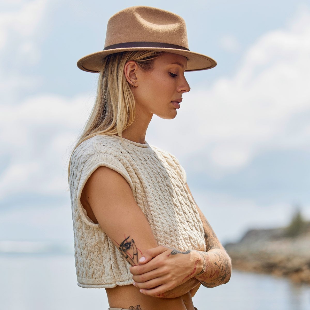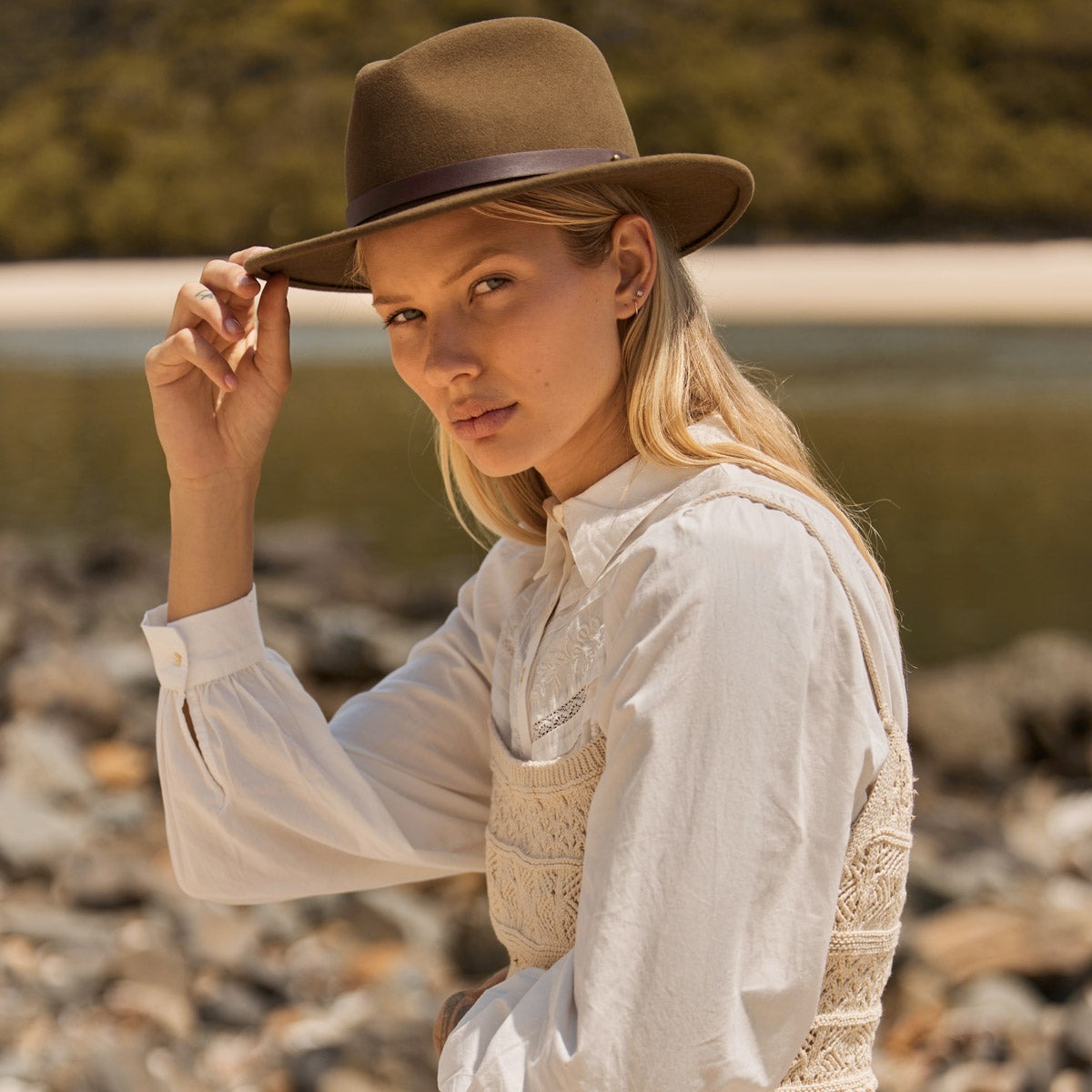 Ignorance is Bliss 延續著經典西部寬簷帽的時代精神。凹凸感豐富的帽型、細緻的皮革飾帶、羊毛氈的材質氛圍,讓穿梭在水泥叢林裡的都市人感染了拓荒時代的浪漫風情-率性又高雅、細膩且奔放。