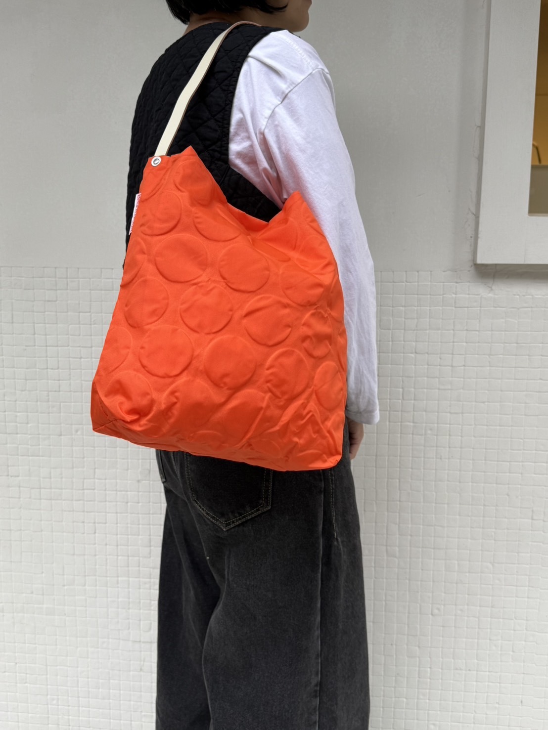 以尼龍三維加工工藝製成的DOTS PACK MINI,設計概念是「像洋服一般的包款」。滿版的立體圓點處理,包身雖然簡單卻帶給人深刻的印象。內裡採未加工的尼龍製成,讓包包在輕薄之餘,也可以保有足夠的立體感,不至鬆垮變形。提把是皮革製成,異材質拼接和豐富的紋理使DOTS PACK MINI有豐富的視覺表情。