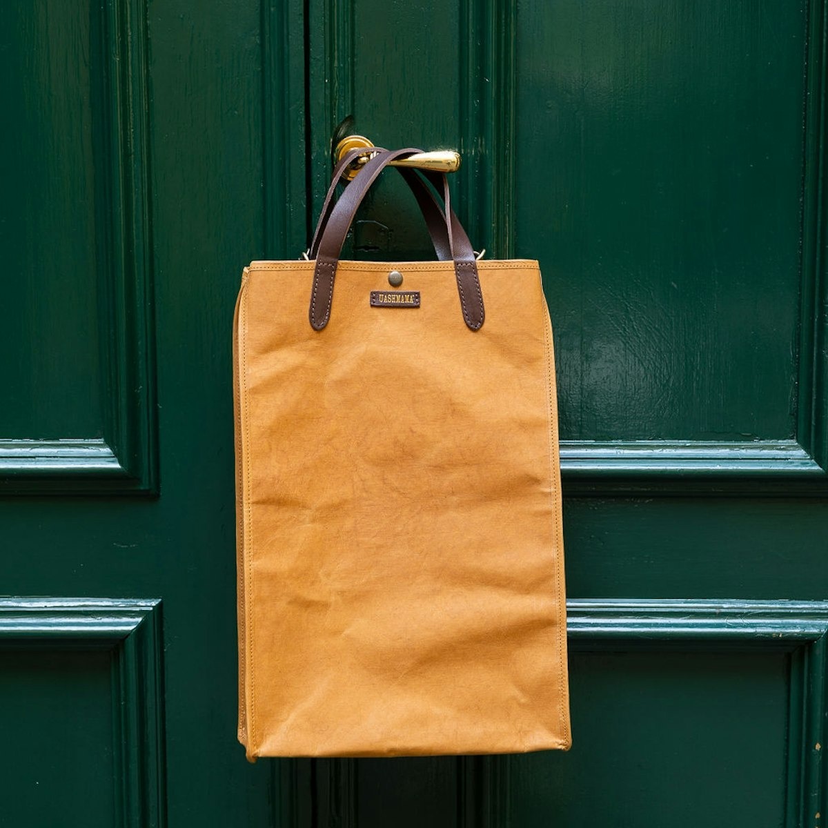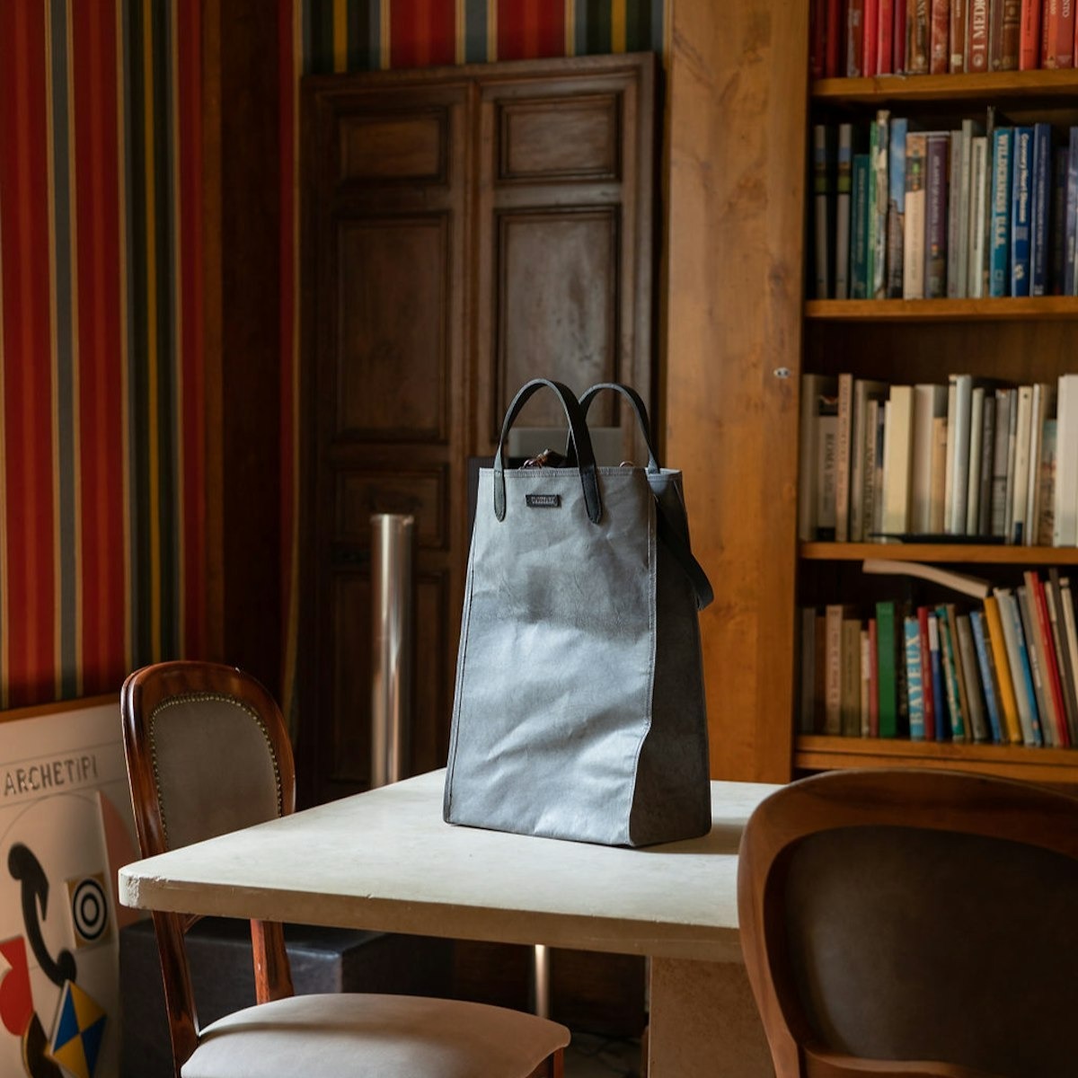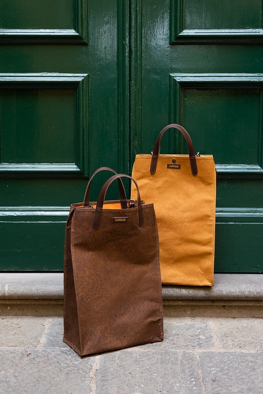 Gaia Bag體現了簡約本質的UASHMAMA風格。這是一款真正的手提包,是大學、市場或健身房的完美包款。這款包極為輕巧、堅固耐用。 Gaia Bag 配有簡單實用的可拆式皮革肩帶、按扣和有機橙色棉襯裡。它的特點是由帶有 Vacchetta 表面處理的紙張製成,這種表面處理與鞣製技術相關,是一種極其耐用的創新材料。此外,在沒有水的情況下,使用植物(苯胺)顏色和蠟,用海綿手工對紙張進行著色。