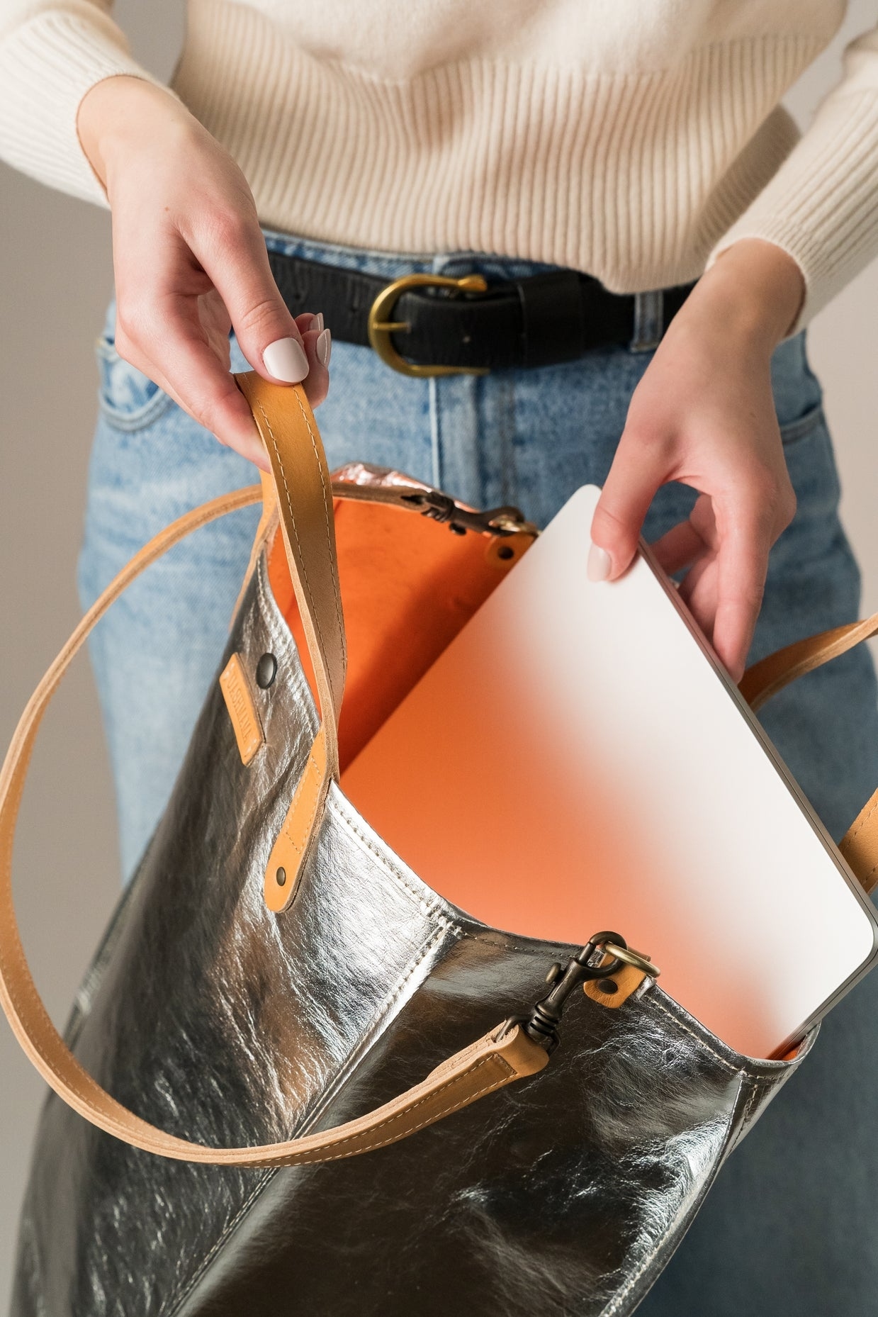UASHMAMA使用的皮革均在托斯卡納地區鞣製,利用古老的“植物鞣製”原則和方法,完全不含鉻,僅使用來自栗樹的單寧染製加工。