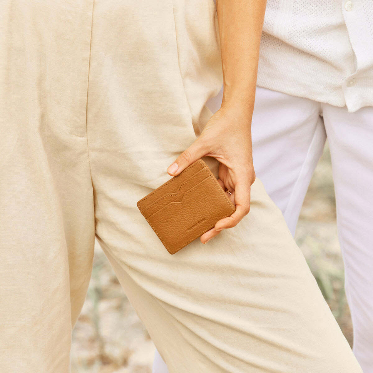 質料上使用具有收縮性質的巴西鵝卵石皮革,拿在手上柔軟舒適。卡夾中間的倒三角設計,供你更好抽取,也是少數卡夾擁有鈔票夾層的款式。