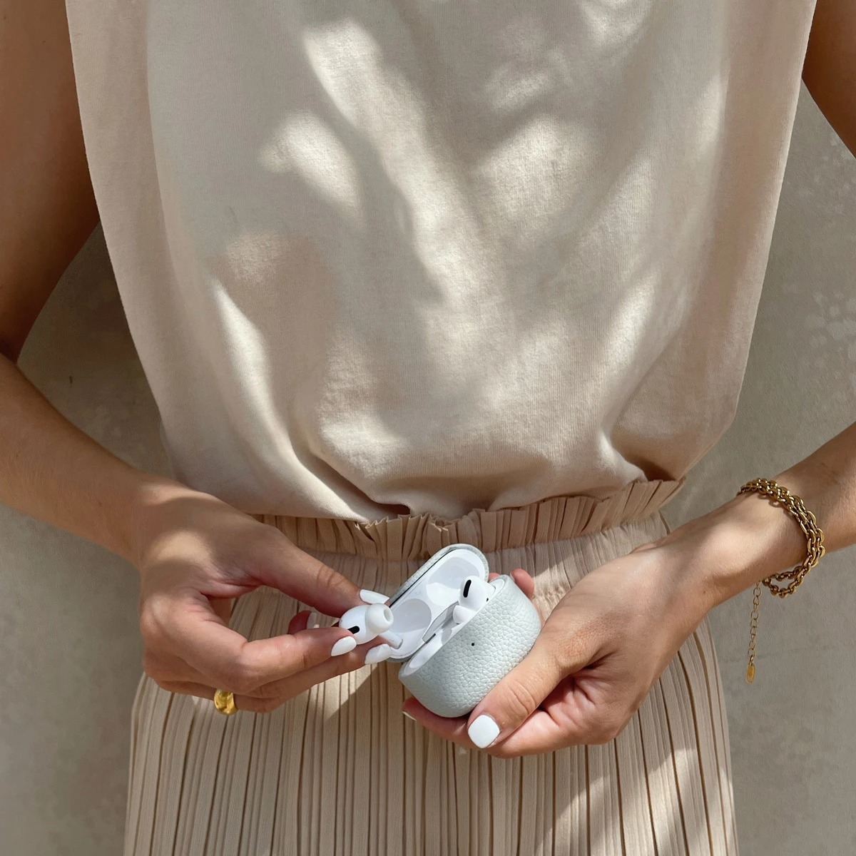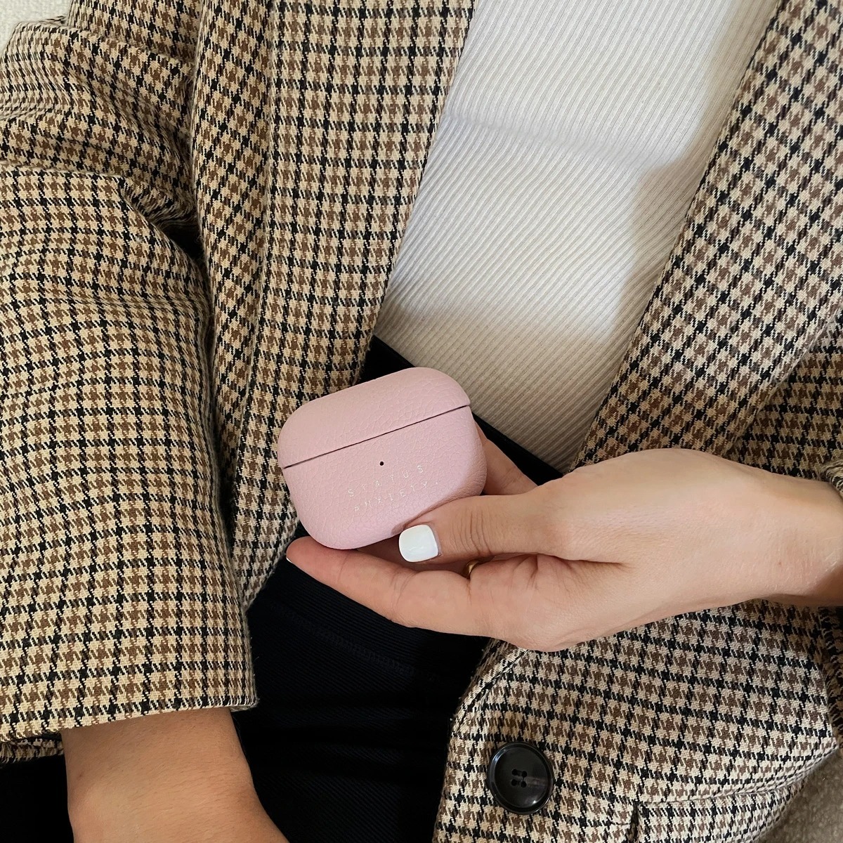 使用來自巴西鵝卵石皮革,質地柔軟,並具有皮革的自然紋理,握在手上非常舒適,搭配燙銀的SA LOGO,為您的耳機提供十足保護。