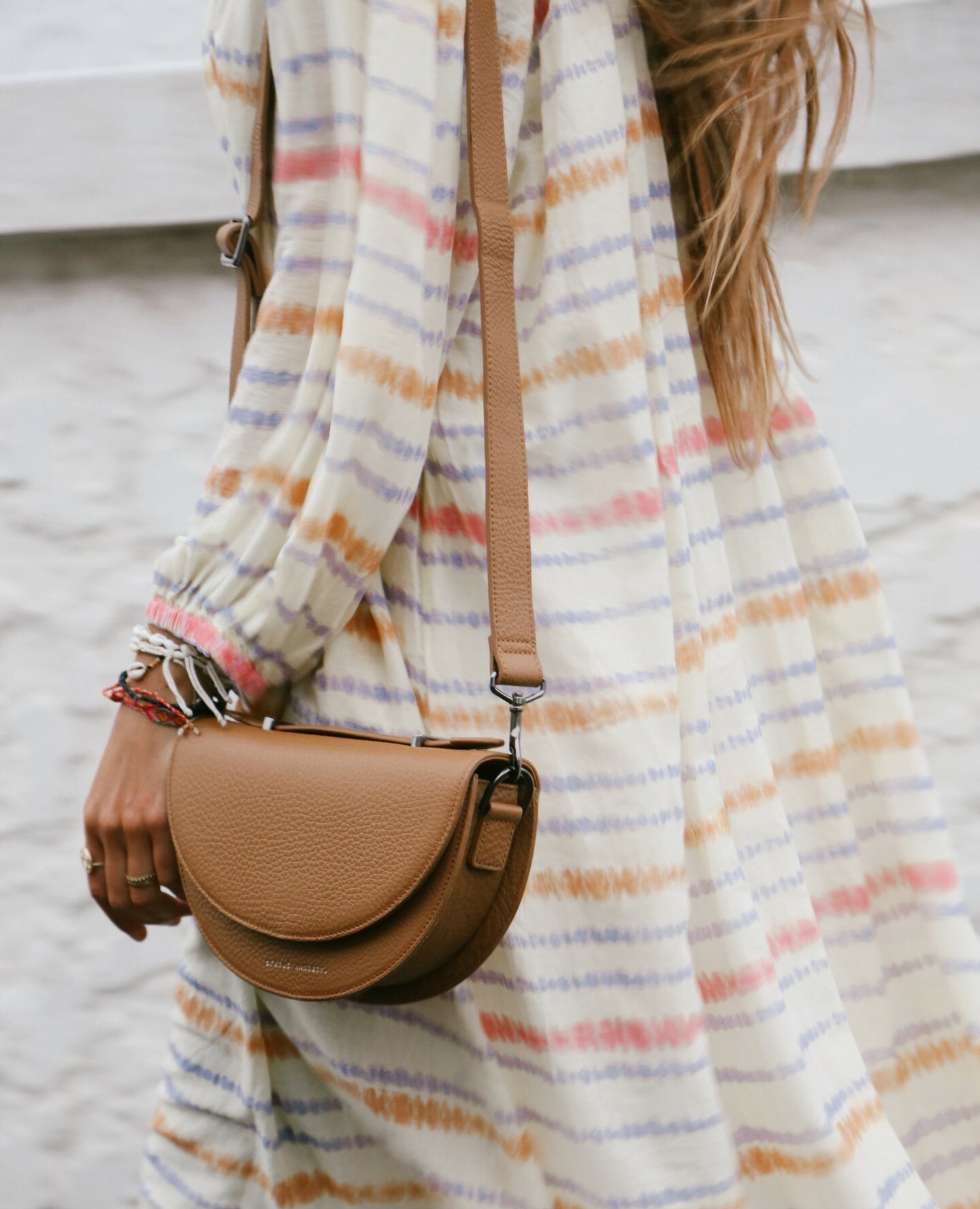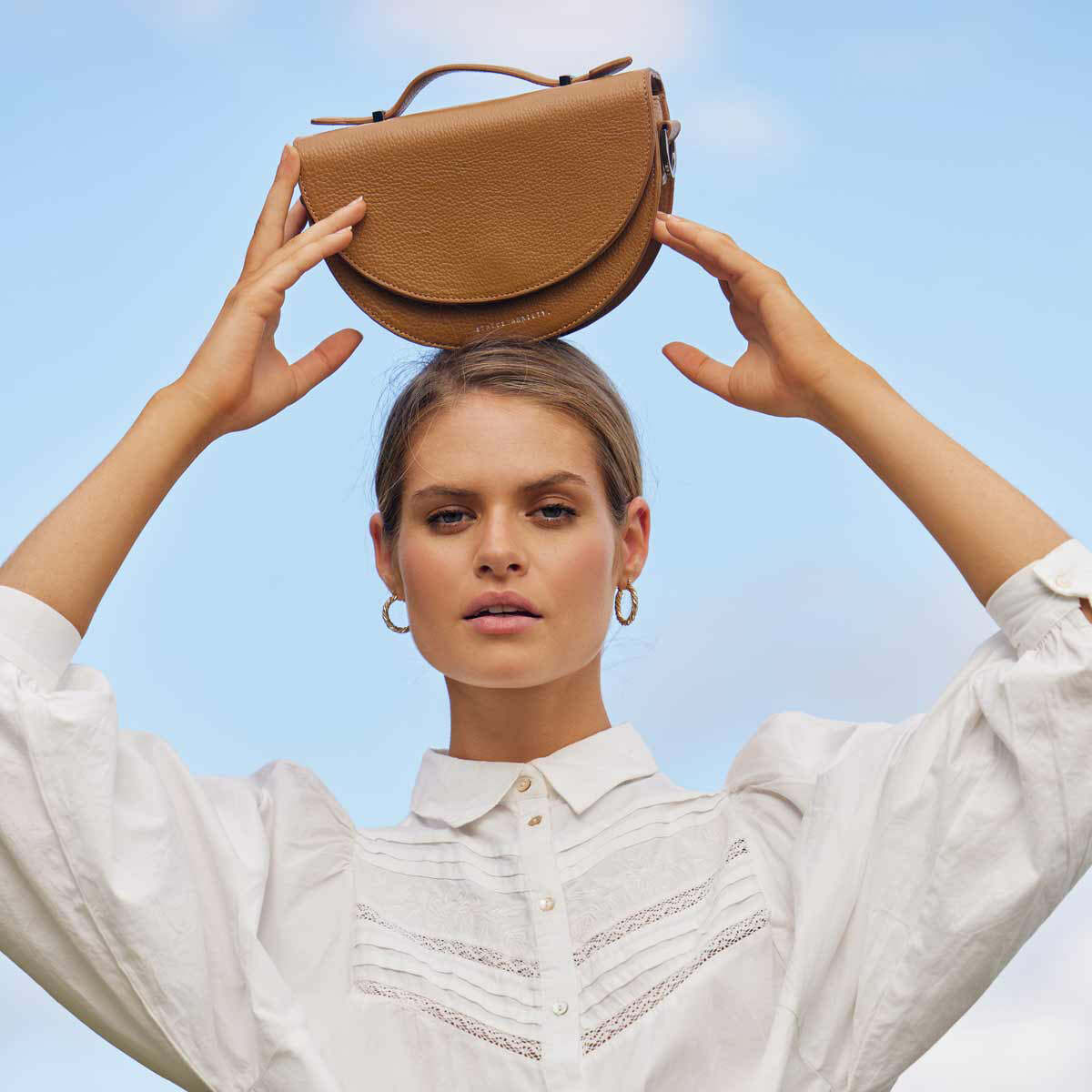 經典的的馬鞍造型,使用來自巴西的牛皮勾勒出硬挺的版型,手提把手的部分是ALL NIGHTER的最大特色,可抽取拉開。
