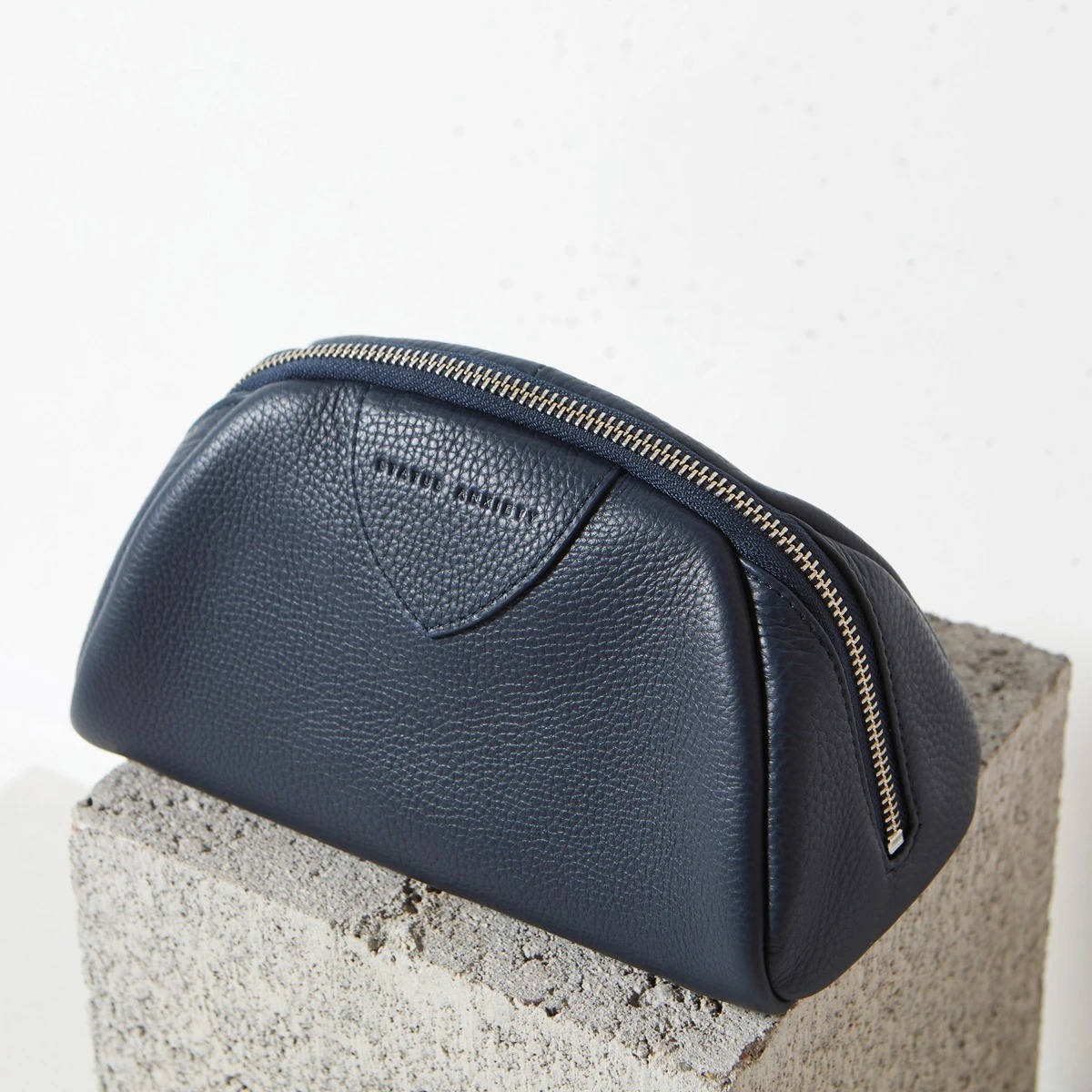 Adrift包可用於日常或遠旅行時攜帶化妝品,備有防水內襯。由柔軟的巴西鵝卵石皮革製成,平坦的底座和寬大的開口,方便查看內部物品備有防水防污內裡,內部拉鍊口袋可存放較小的物品。