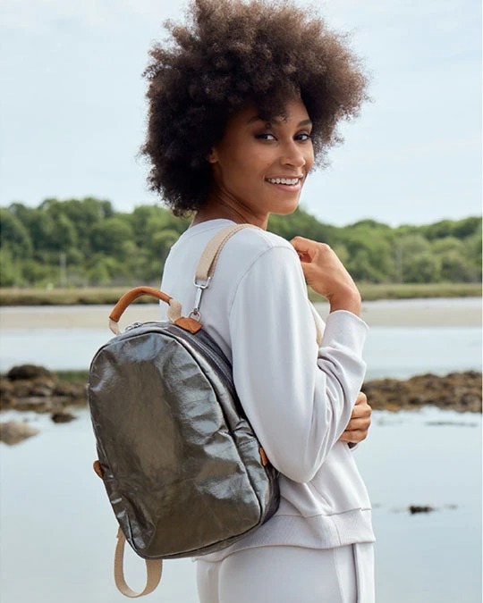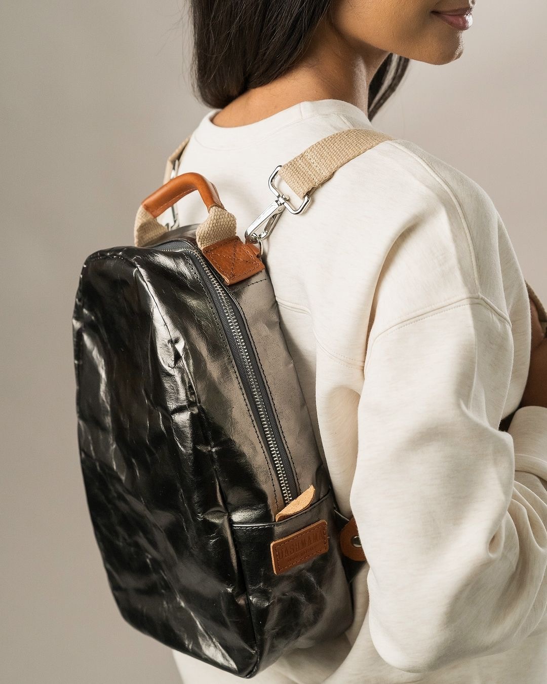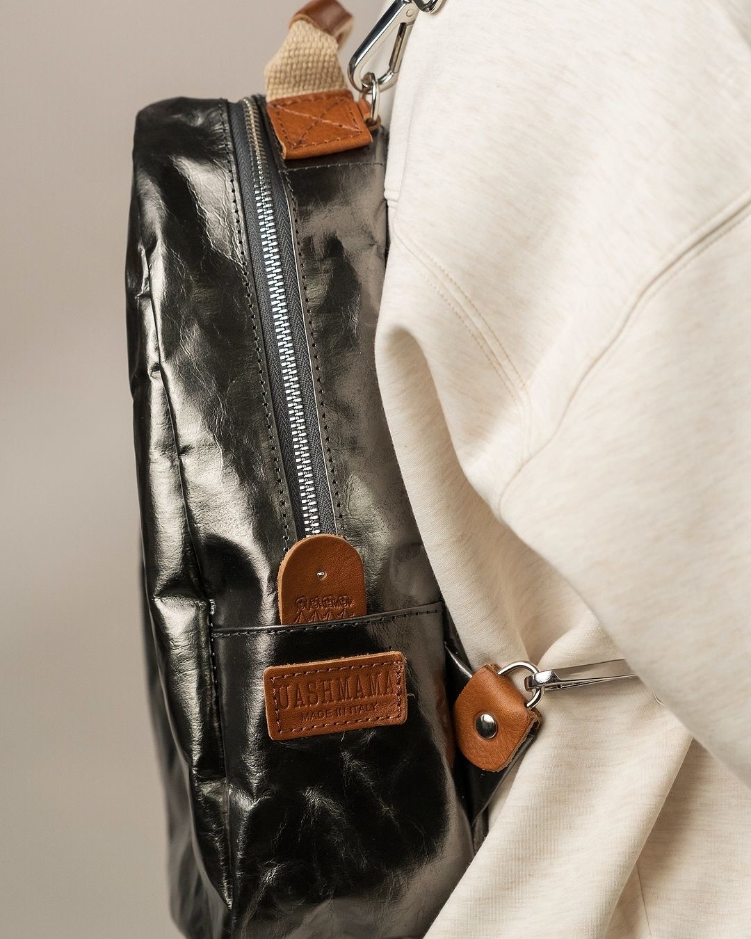 由義大利UASHMAMA專利的環保紙AGGO製成,內裡是有機纖維棉、把手細節由植鞣皮革製成。