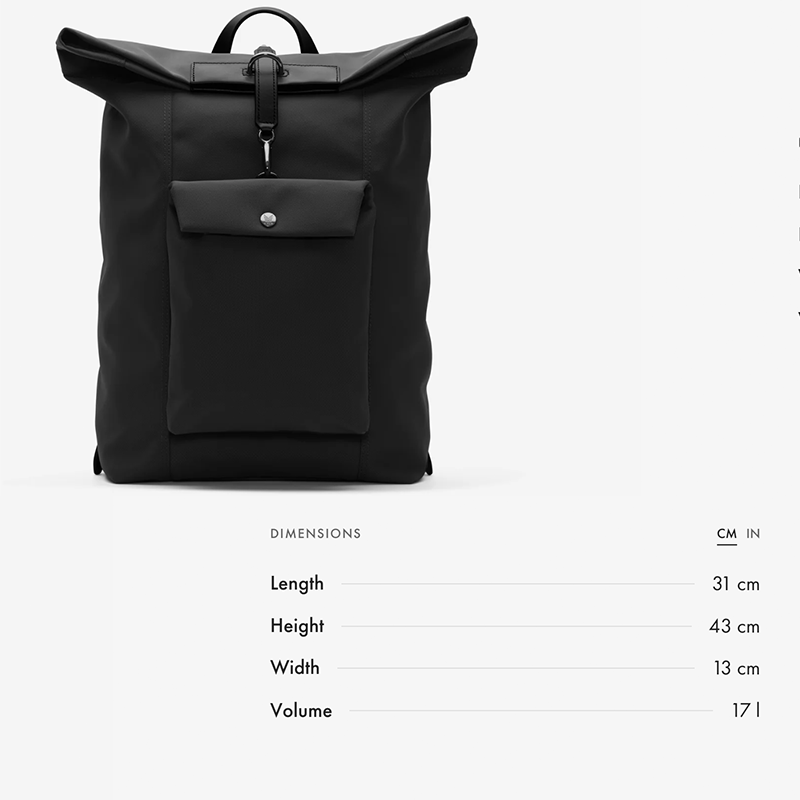 - 兩顆隱藏式磁扣與一個大型 D 形環確保背包封口穩固