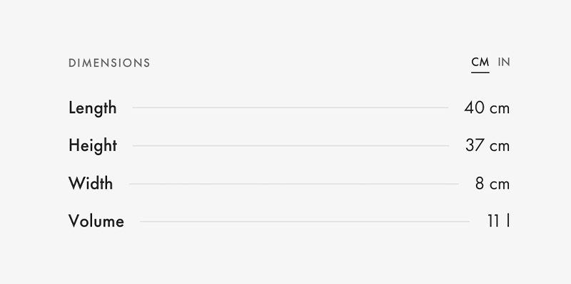 Mismo的五金扣具均使用義大利製的實心黃銅,造型上以簡約的海錨鉤、D型環貫徹經典元素。拉鍊則採用日本YKK最高等級的Excella系列,以確保拉鍊尺永保滑順以及鍍層的耐用性。