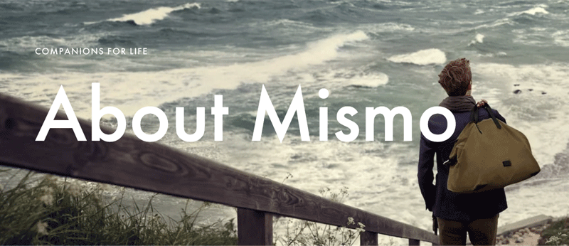 Mismo的品牌名稱源自於西班牙語,意思是「相同的」。創辦人夫婦Adam Bach和Rikke Overgaard喜歡他背後的意義:天然材料製作的包款,如畫布般的潔淨;透過個人的經年使用塑造出不同的個性。Mismo的設計帶有北歐極簡風格,讓人聯想到如Arne Jacobsen、Finn Juhl等丹麥設計巨匠的視野以及材料哲學。