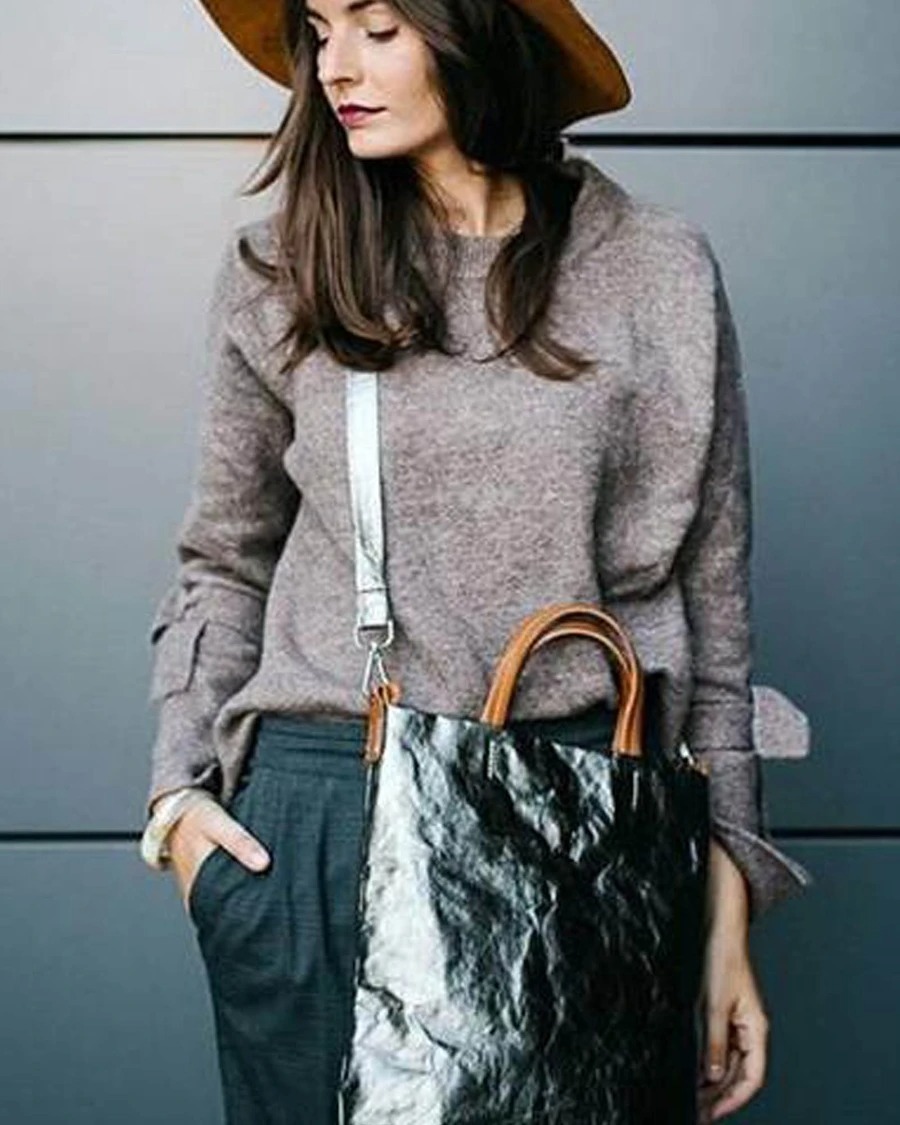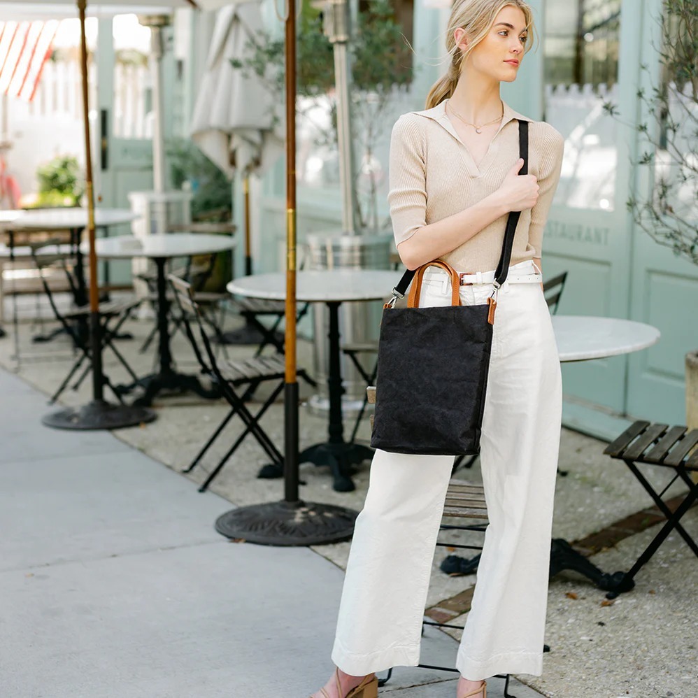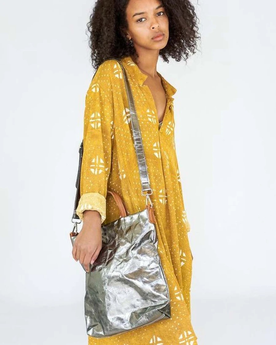 由義大利UASHMAMA專利的環保紙AGGO製成,內裡是有機纖維棉、把手細節由植鞣皮革製成。