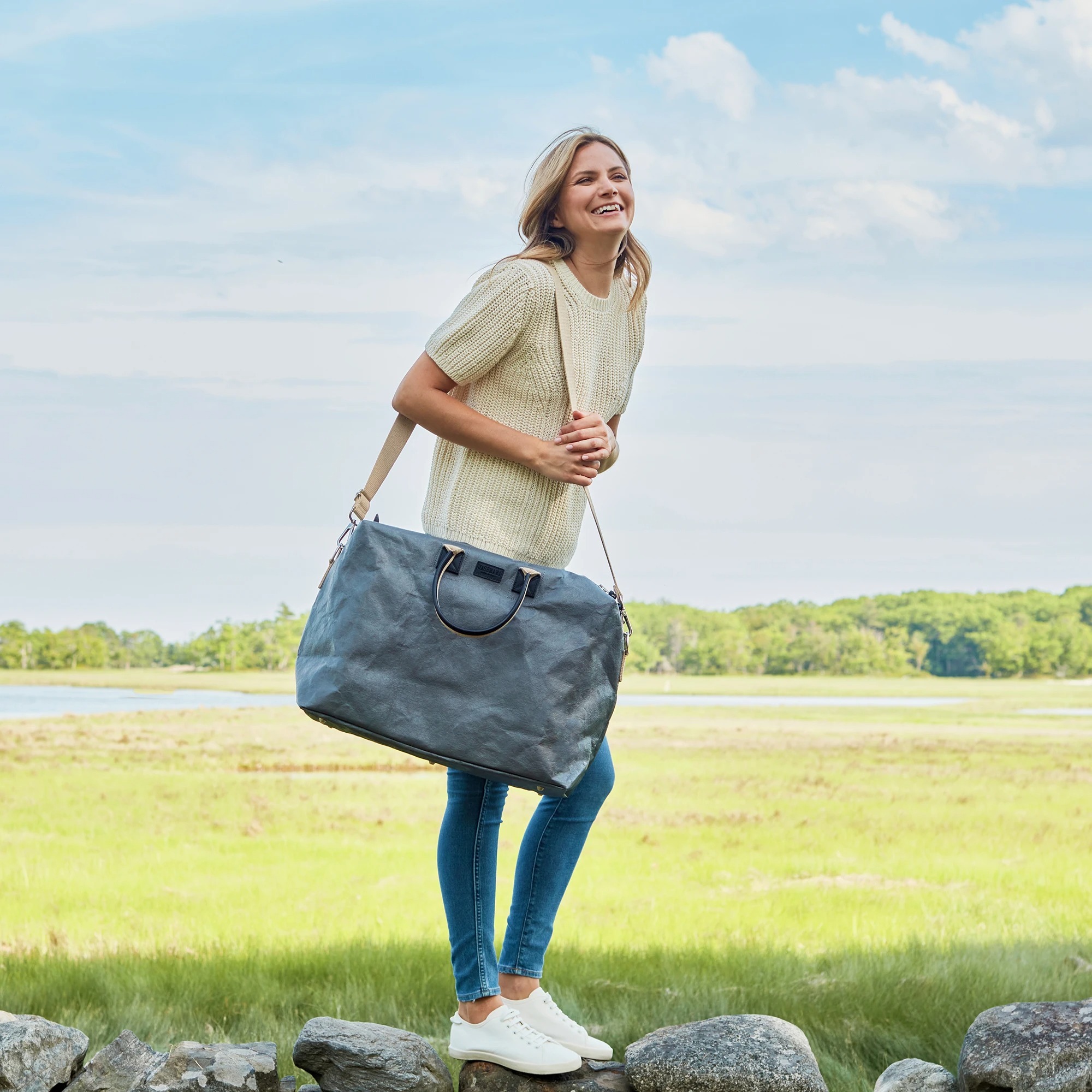 由義大利UASHMAMA專利的環保紙AGGO製成,內裡是有機纖維棉、把手細節由植鞣皮革製成。