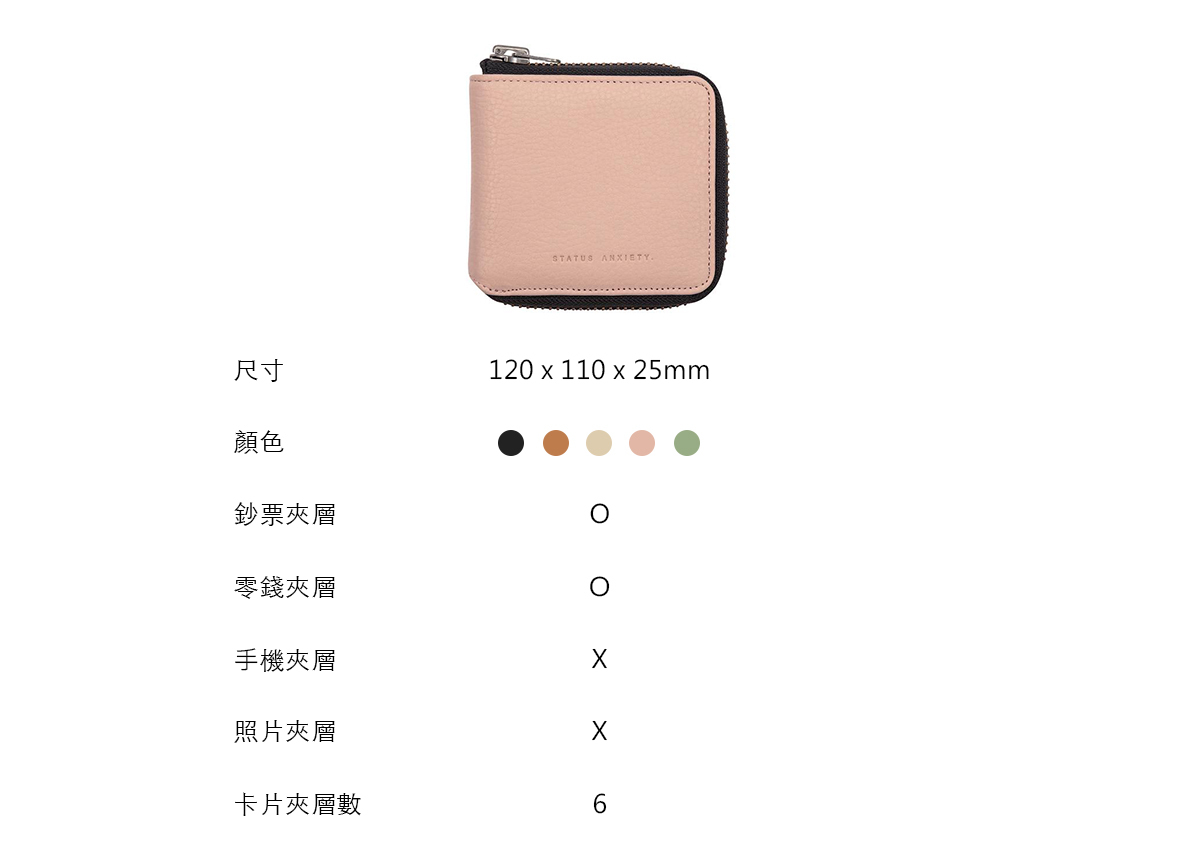 6個卡片夾層,拉鍊式零錢袋