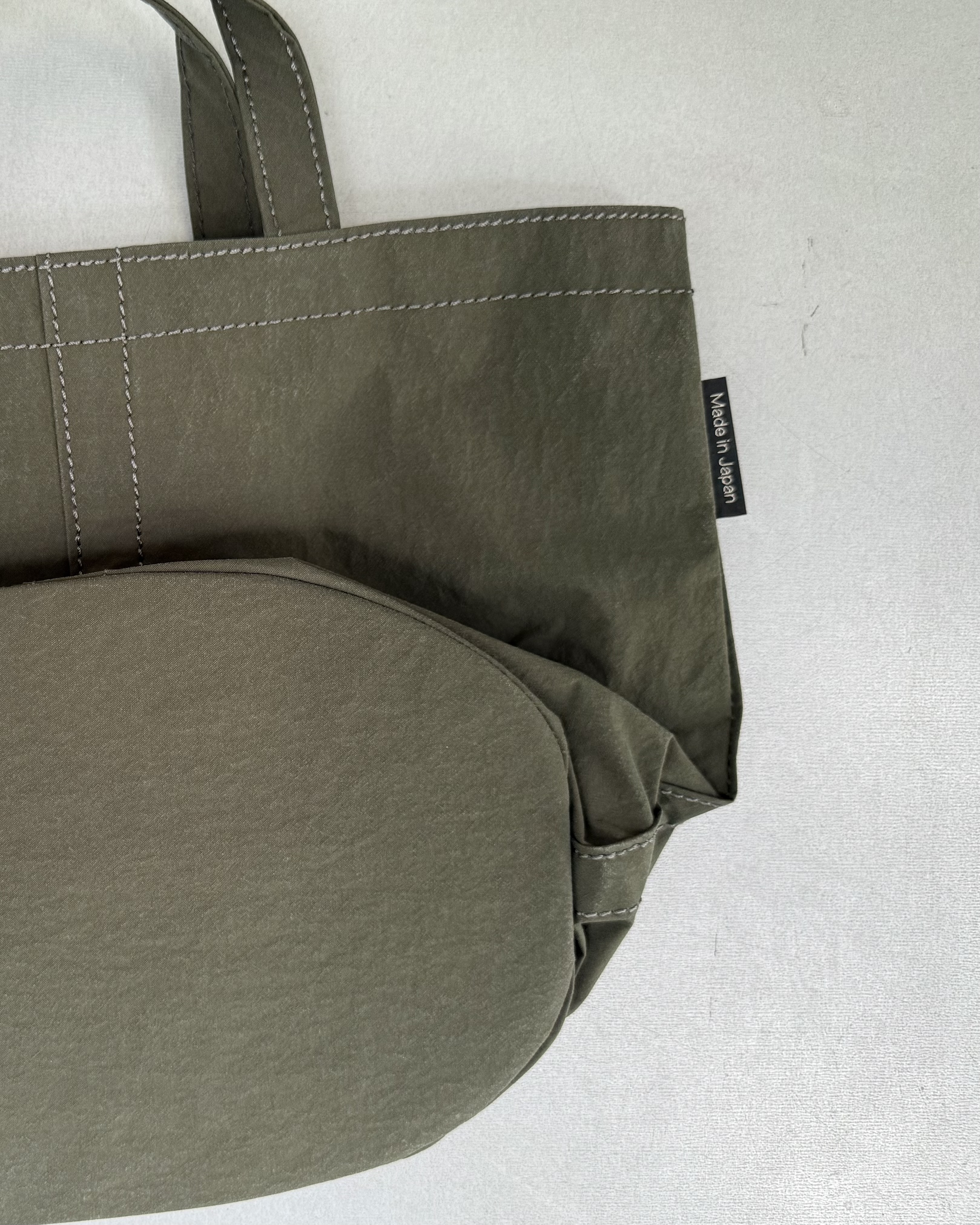 ULTRA LIGHT MARKET BAG系列採用經過鹽縮處理的緻密尼龍材料製成。經過處理的面料相當堅固,在使用時不易變形,且有不同於一般尼龍面料的特殊啞光質感。包底帶有定型底板,即便裝的物品比較多或形狀不一,也可以井然有序。